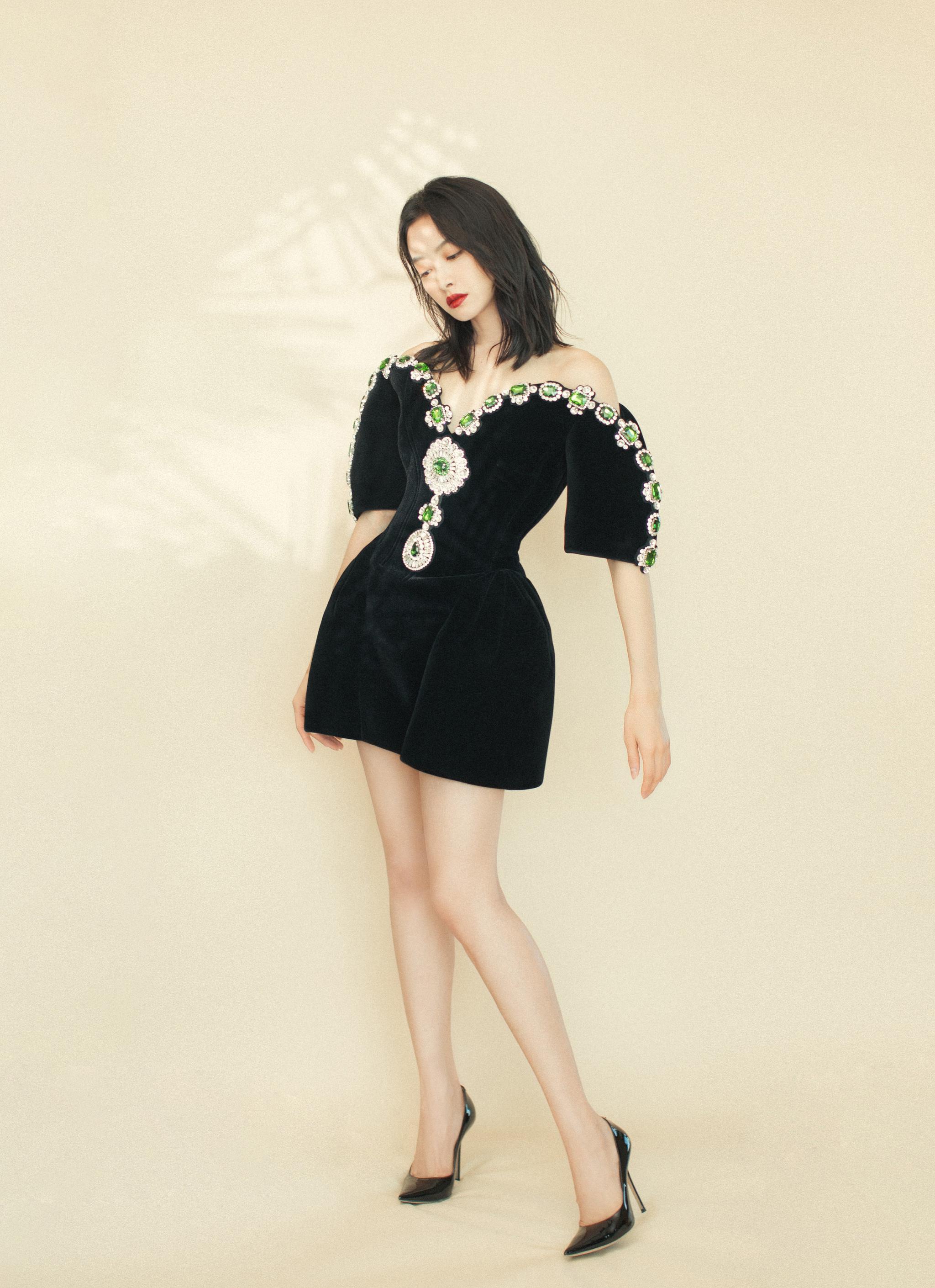 宋茜当天身穿David Koma 2020秋冬高级成衣系列暗夜流光礼服裙,搭配JimmyChoo高跟鞋,祖母绿宝石精巧镶边,V领抹胸诠释性感线条,神秘优雅不失宁静高贵,展示出从容与自信的气场。在现场宋茜表示,这是她第一次尝试一个人饰演两个角色,很有挑战也很过瘾,对自己也是非常棒的一次锻炼。