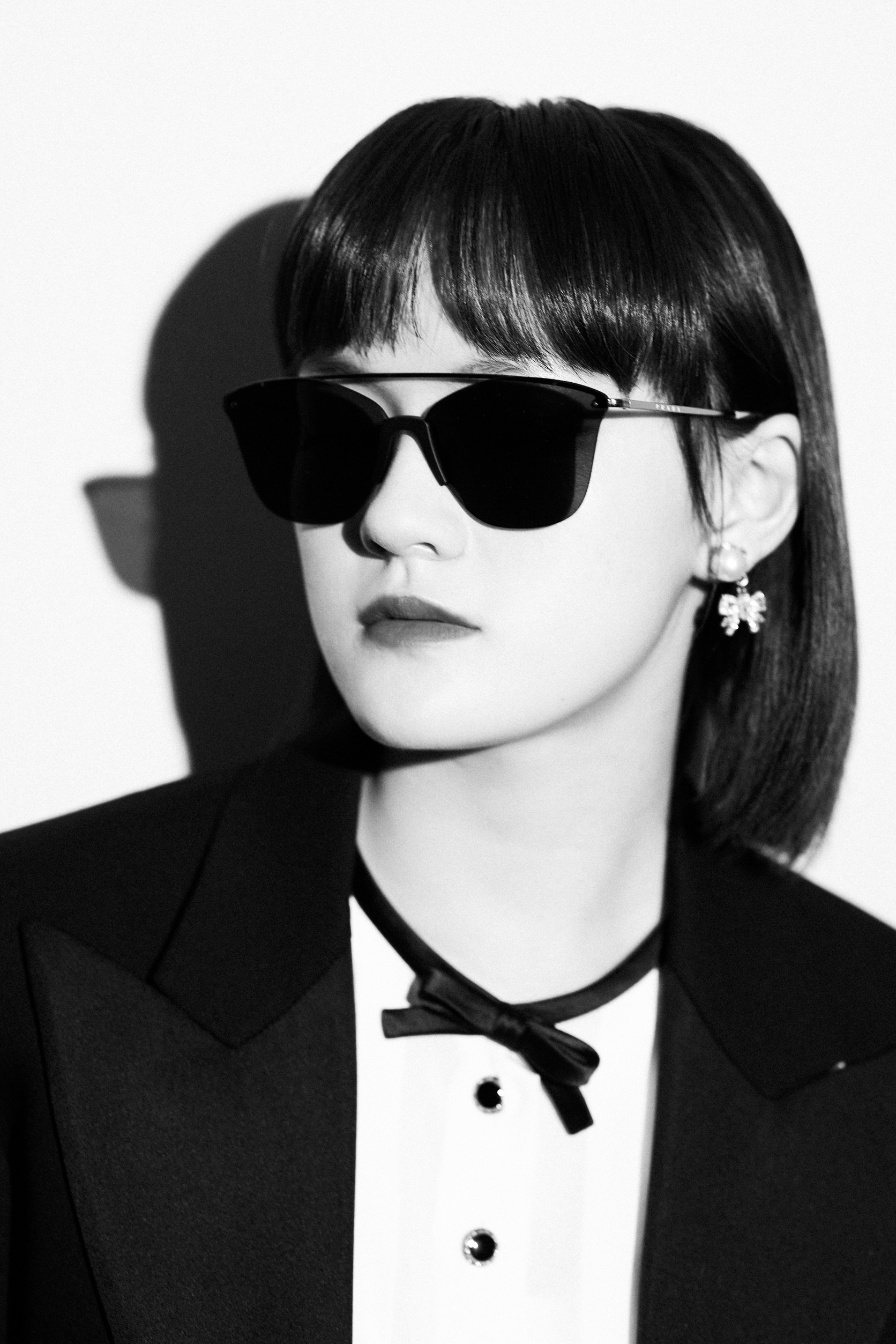 11月24日,演员文淇于上海出席品牌活动,不失设计感的短款西装搭配高腰长裤,ALL BLACK风尽显少女酷飒。