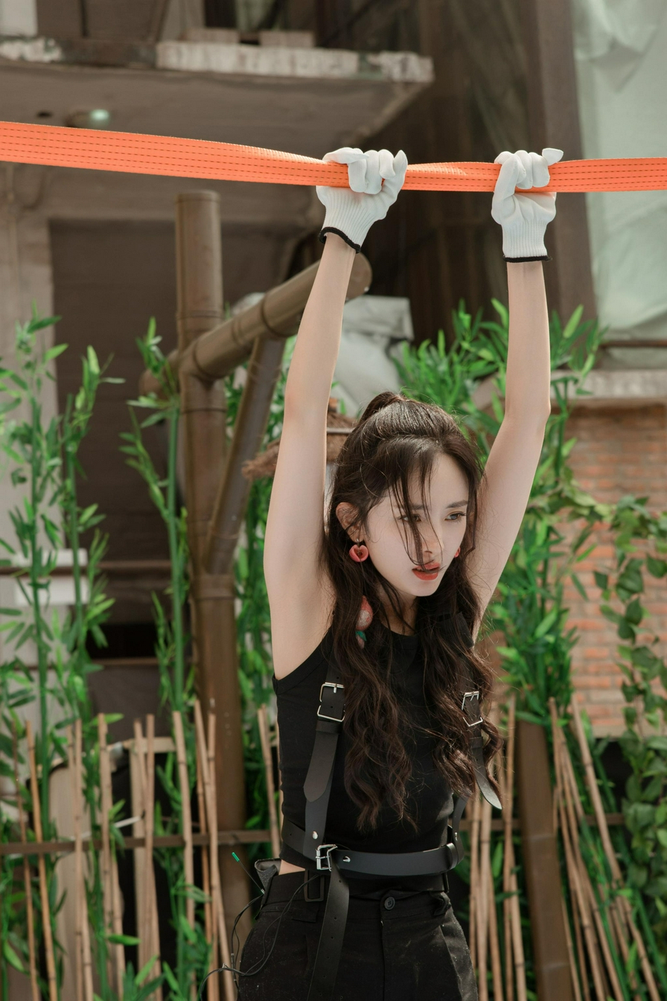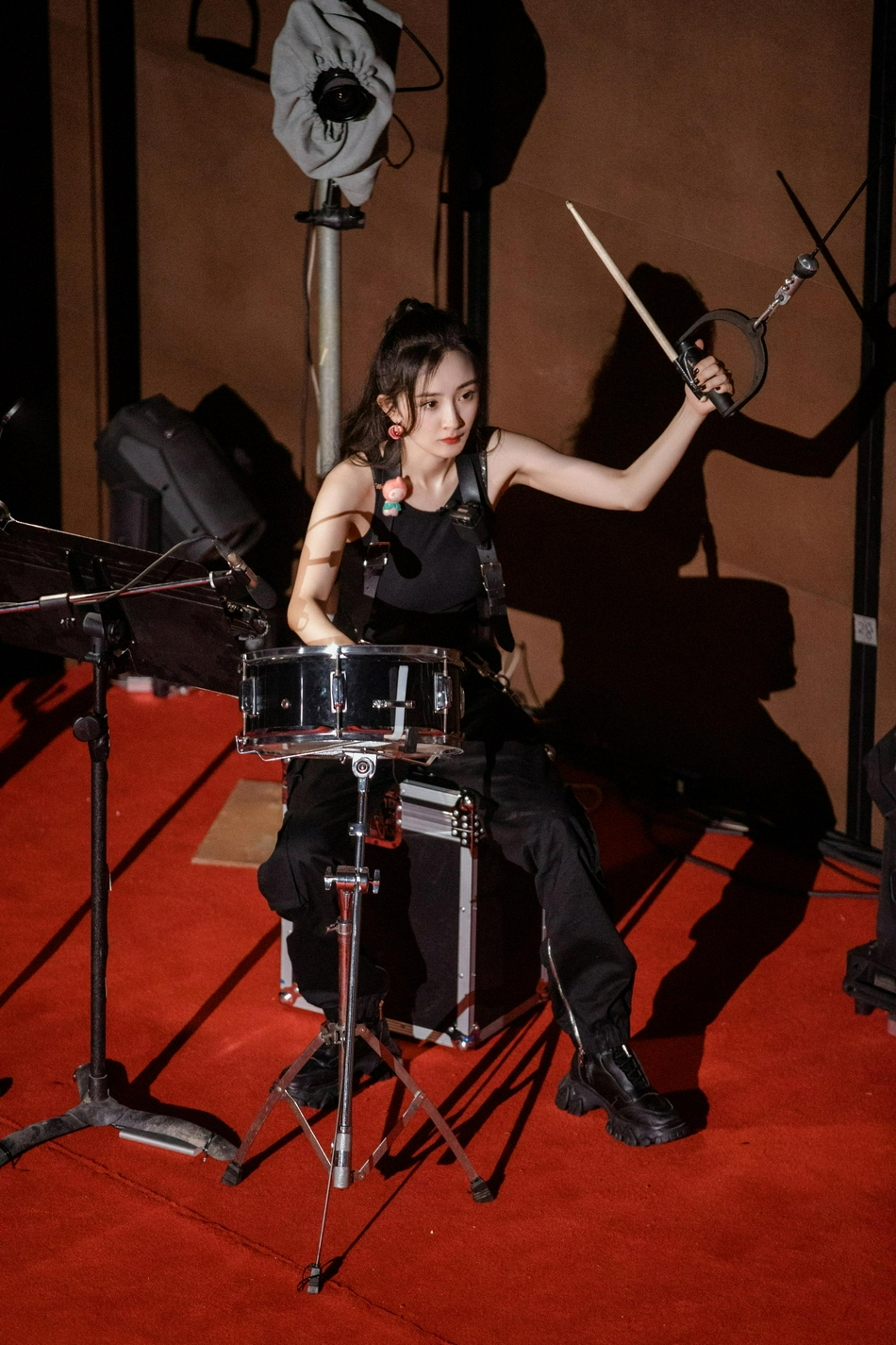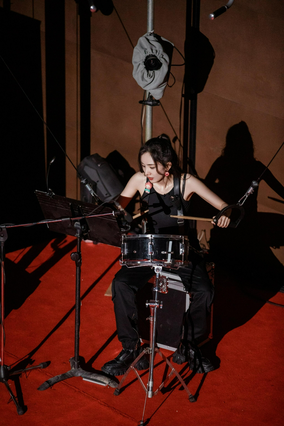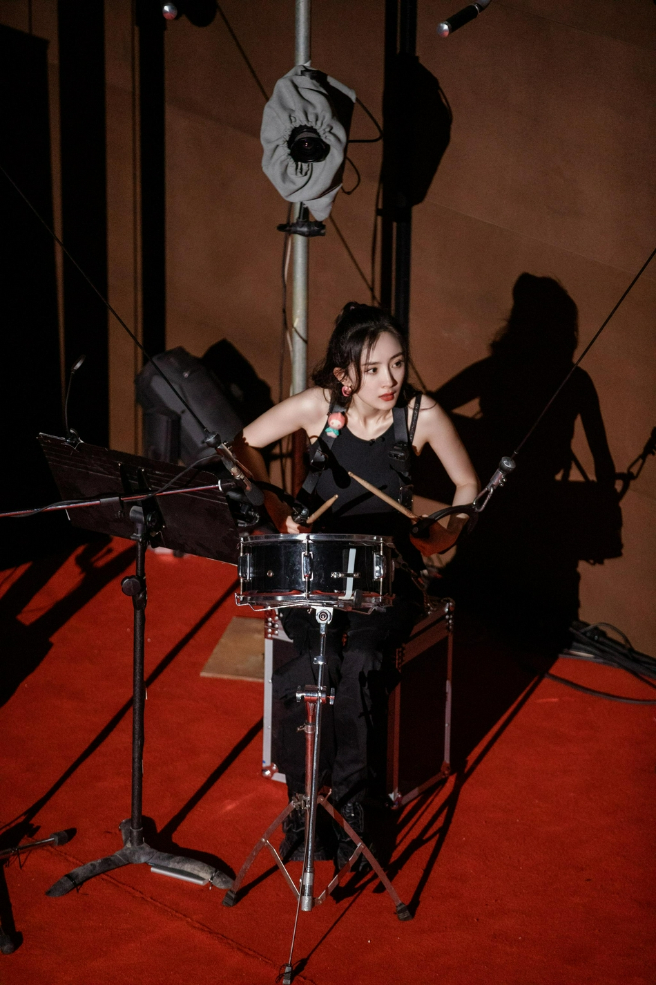 杨幂工字背心造型清爽展现好身材 打架子鼓手臂线条紧致[9P]