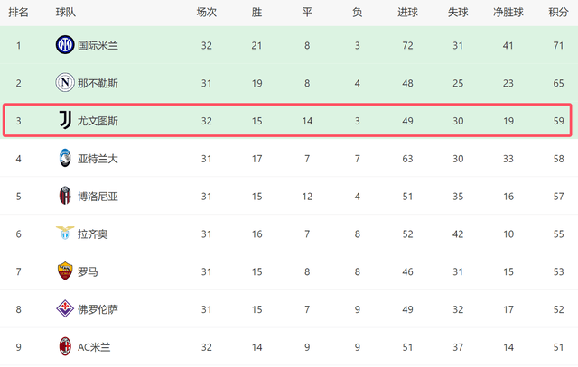 随着尤文找回状态,意甲争四也彻底乱了,拿到3分之后,尤文在多赛1场的情况下,已经反超亚特兰大,打进联赛前三。由于接下来亚特兰大要对阵博洛尼亚,他们至少有1队要丢分,因此理论上,尤文已经完全掌握了自己的命运,只要最后6轮比赛全胜,尤文就肯定能参加下赛季欧冠。