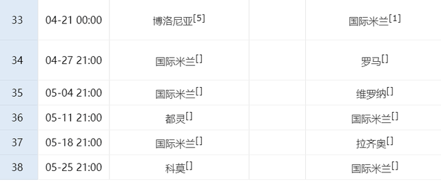 4月21日:国米vs博洛尼亚(争四强队对决)。