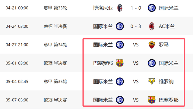 紧接着,国米将在欧冠半决赛中对阵巴萨。尽管巴萨是本赛季欧冠的最大热门,但国米也并非没有机会。巴萨在半决赛前要参加国王杯决赛,这可能会对他们的体能和状态产生影响。如果巴萨战胜皇马夺冠,他们的士气将得到极大提升,这对国米来说将是一个更大的挑战。
