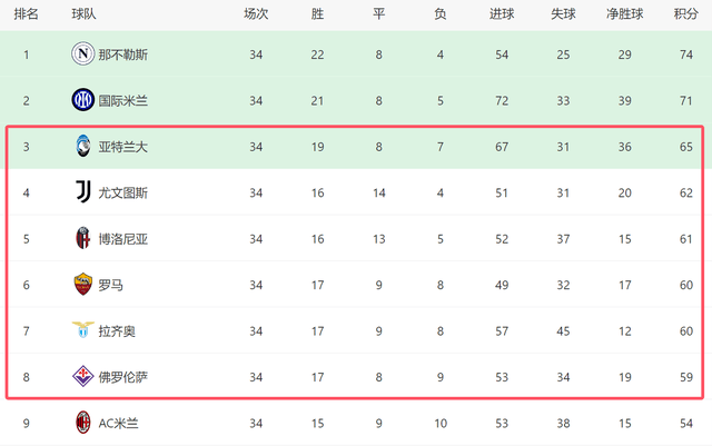 - 踢完这两轮比赛后,意甲争四格局将逐渐明朗。谁能在这两场关键战中拿到3分,就有很大机会踩着其他对手,晋级下赛季欧冠。