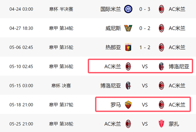 4. 后续赛程:AC米兰接下来的对手包括博洛尼亚和罗马两支争四热门球队,这两场比赛对于AC米兰来说至关重要。如果AC米兰能够拖住这两个对手,可能会间接帮助尤文图斯锁定前四。