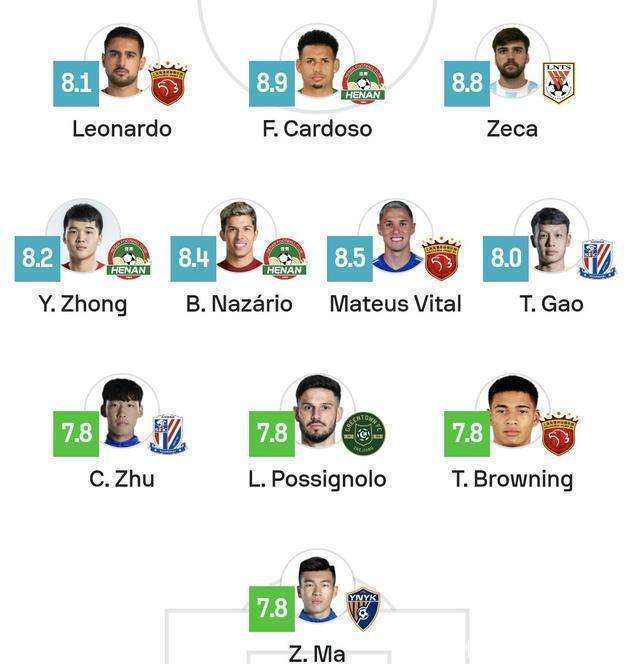 河南队不仅拥有卡多索这样的杀手,钟义浩和纳萨里奥同样榜上有名,让河南队成为本轮的最大赢家,实力不容忽视。与此同时,上海海港的表现也同样出色,蒋光太于后防线的坚定表现,以及维塔尔的入选最佳阵容,海港的双星熠熠生辉。