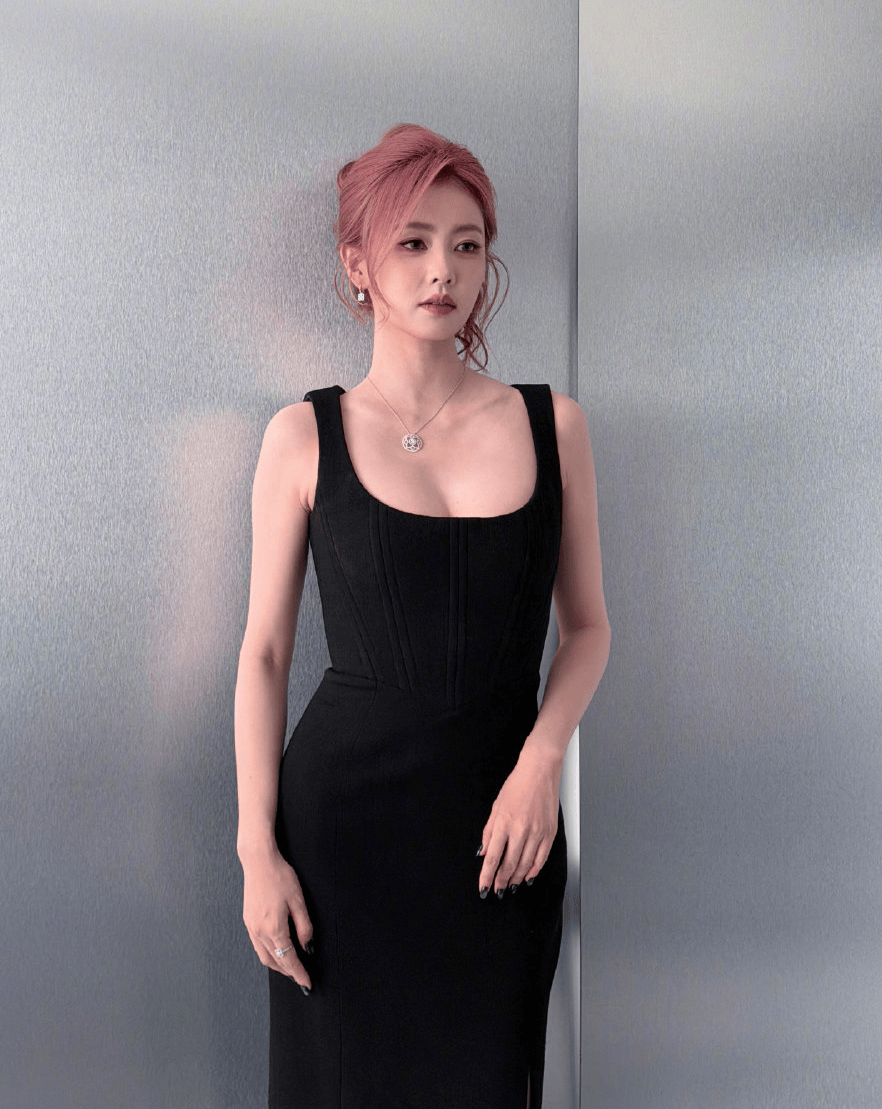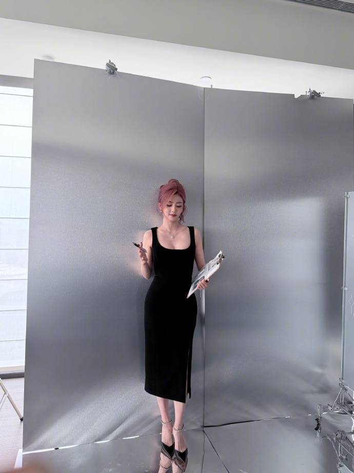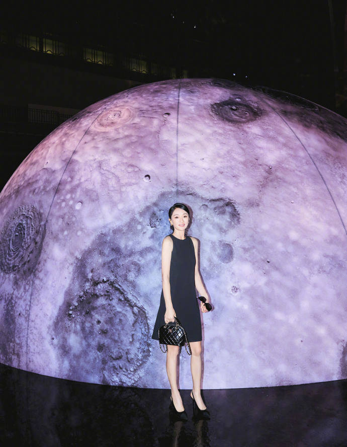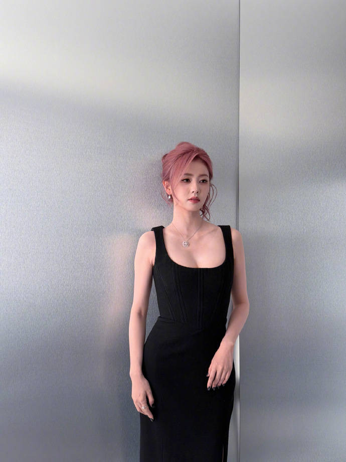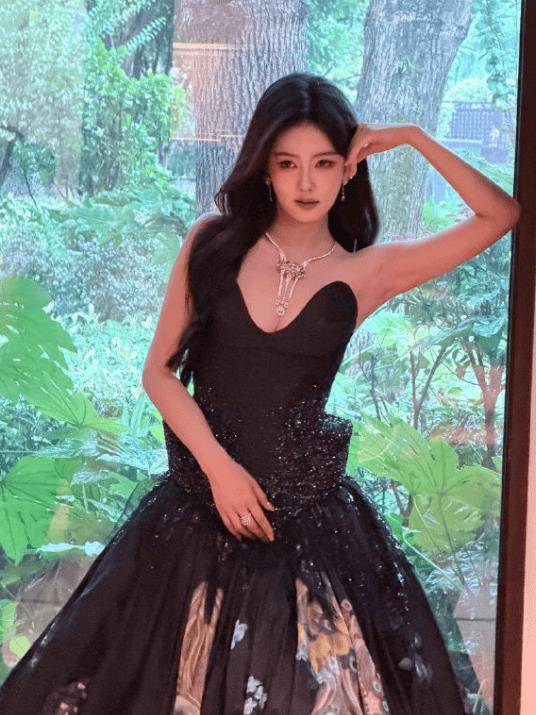 虽然没站在C位,可白鹿选择的黑色礼服还是非常亮眼。