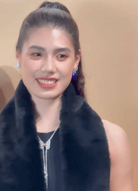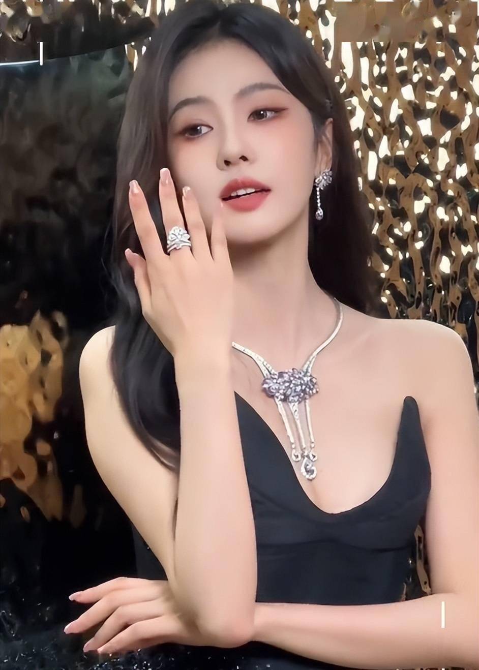 看来这段时间休息得不错,品牌的钻石珠宝在她身上,显得更加高级。