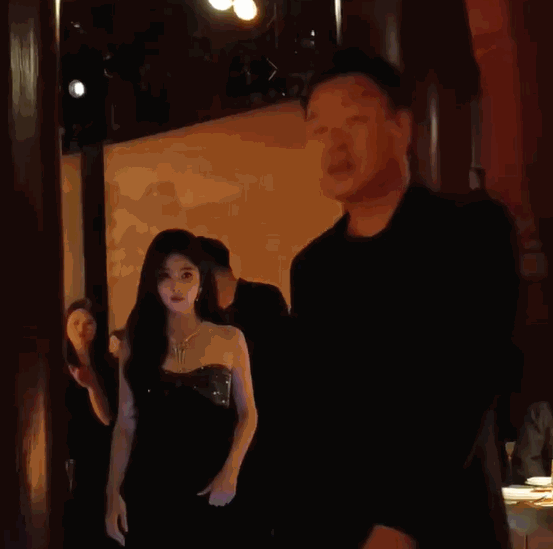 俩人不知道在聊什么,甚至在听不清的时候,还会附身凑近贴着说话。