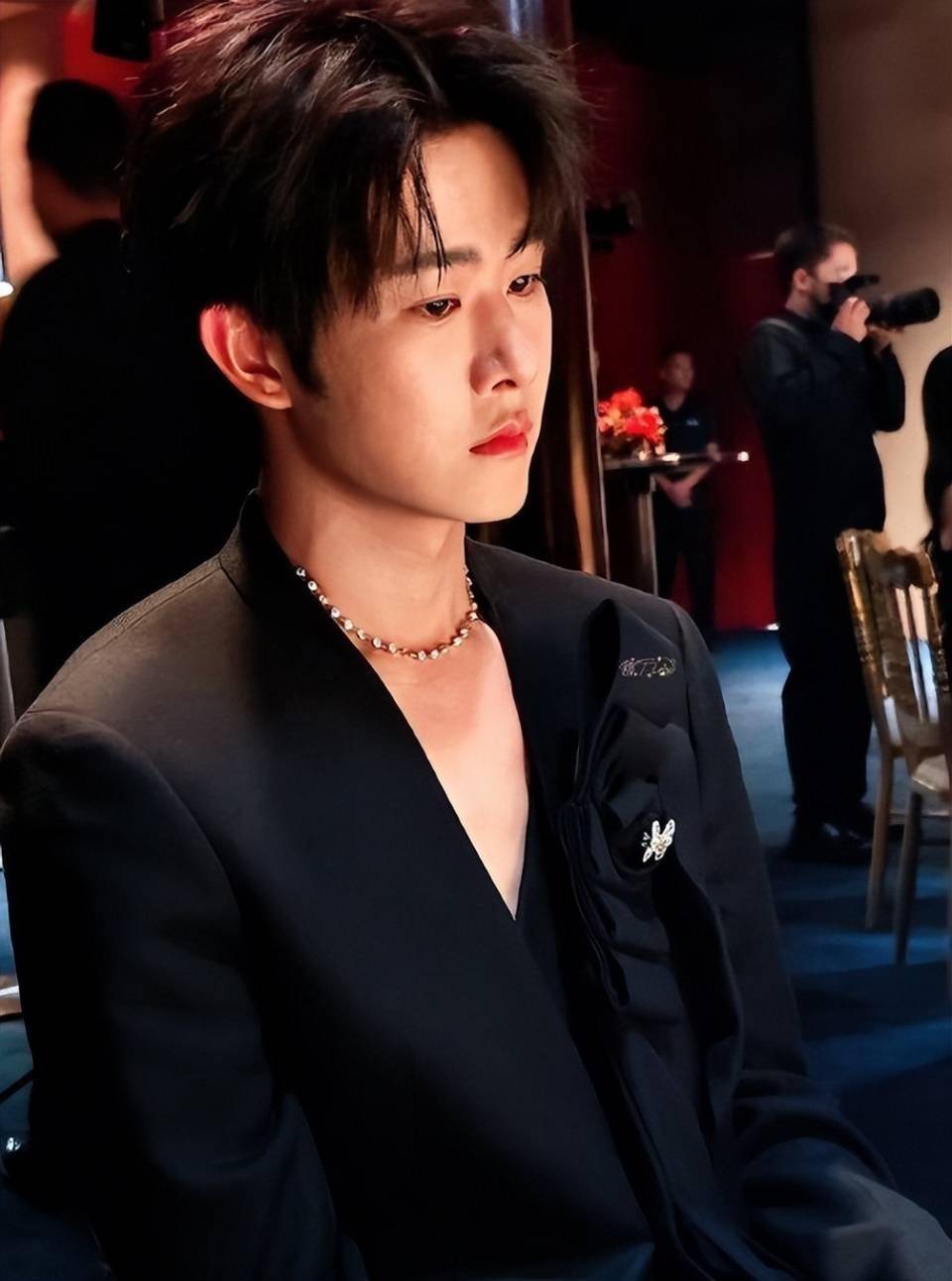 曾舜晞看起来圆润了一些,一身黑优雅又高贵。