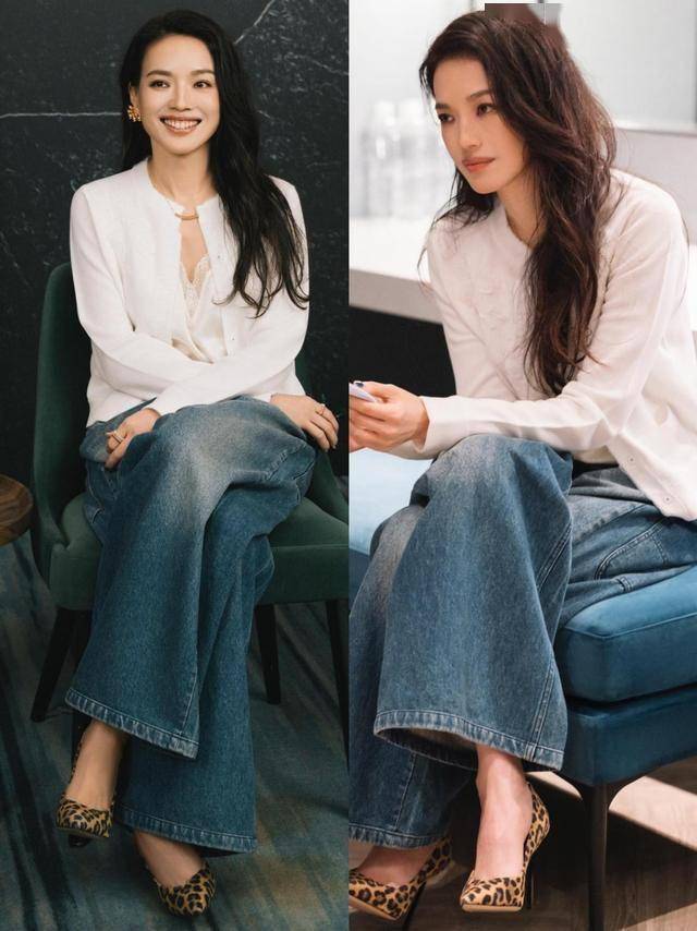 舒淇简直就是妥妥的“百变女王”,可甜美、可性感还可以变身高智大女人,雪纺衬衫配西装直筒裤,落落大方。