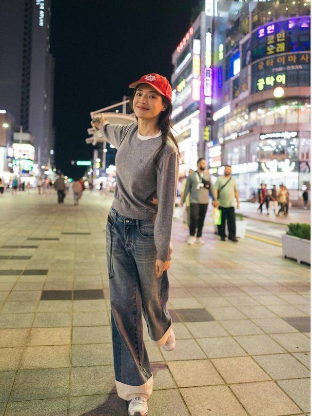 想要放大自身的优势,服装单品就不能太浮夸,基础款T恤配高腰阔腿裤,烫头慵懒感卷发,照样很有氛围。