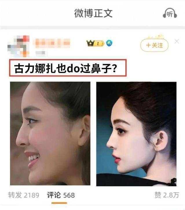 和网友吐槽其他女明星do脸不同,竟然有不少人认为古力娜扎美商超群,鼻子do对了。