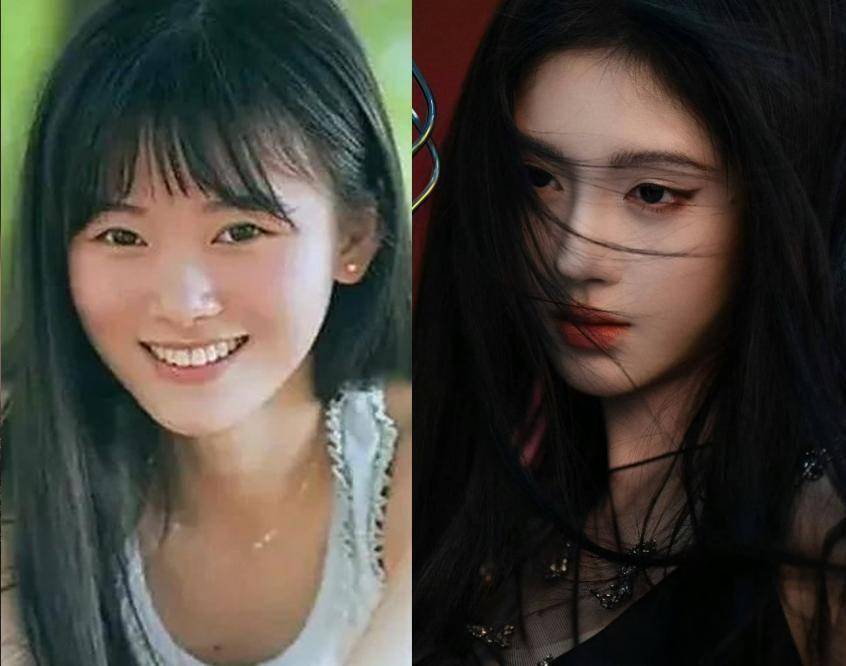 早期的她是典型的国字脸,脸型方正、颧骨过高、下颌角宽大,使得整体面容并不精致。