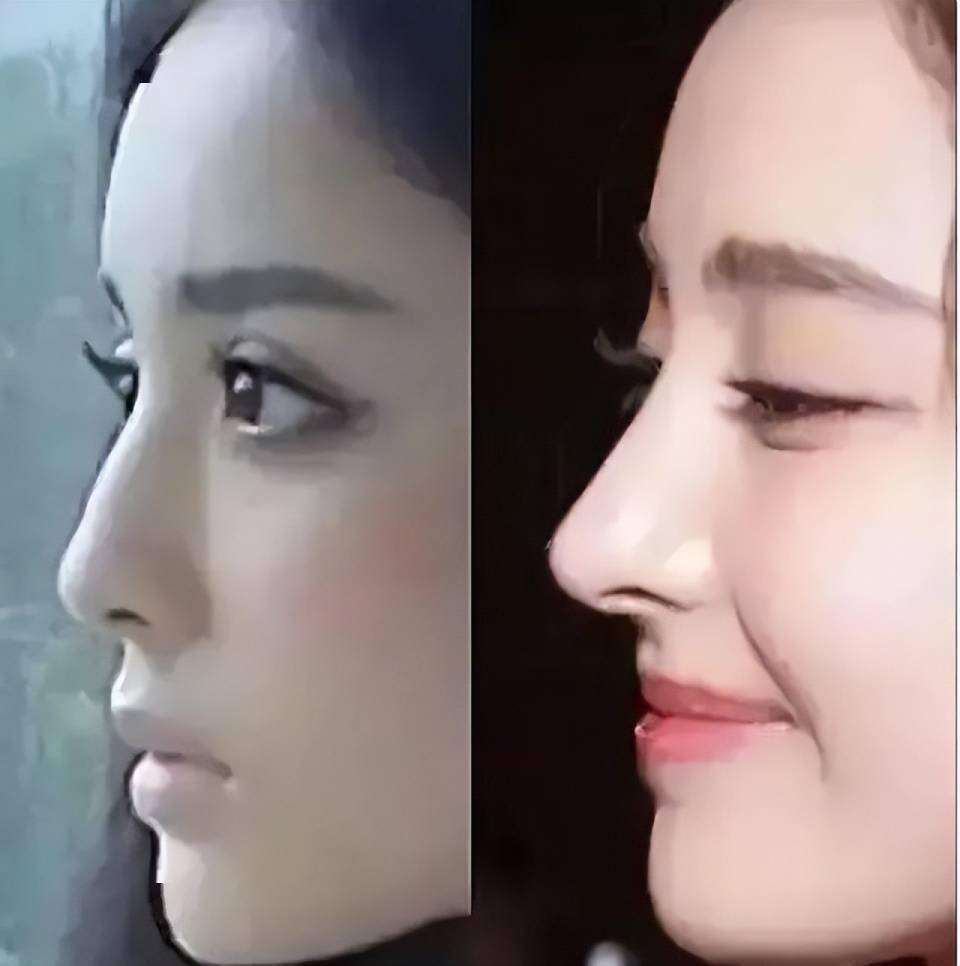 杨幂的原生鼻子鼻翼宽、鼻头大,整体缺乏精致感,而随着年龄的增长,鼻尖翘度增加、人中也变长了,使得五官比例愈发舒展。