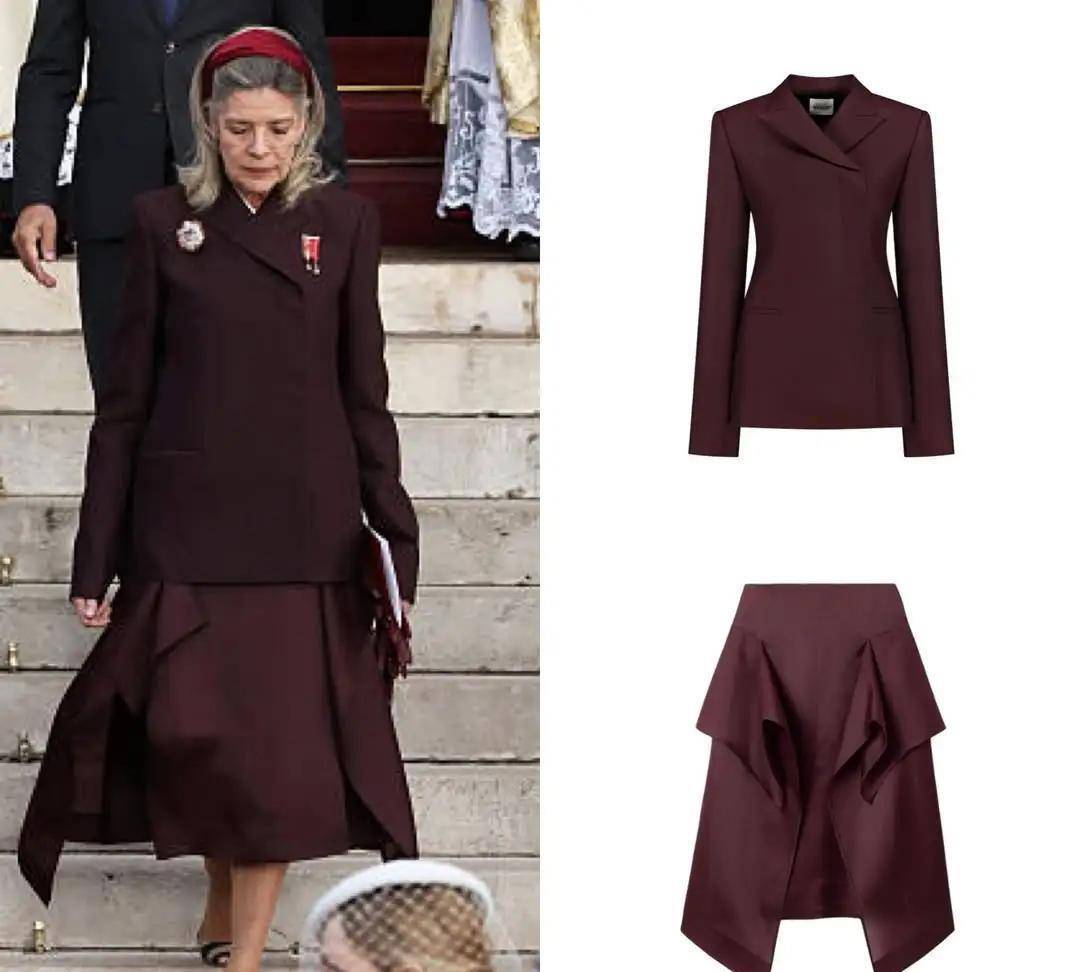 不过,卡洛琳公主今年的着装突破亦值得玩味:她放弃常年穿着的香奈儿,改换品牌Khaite的六四开套装,搭配祖母夏洛特的钻石耳环和巨型海蓝宝胸针。