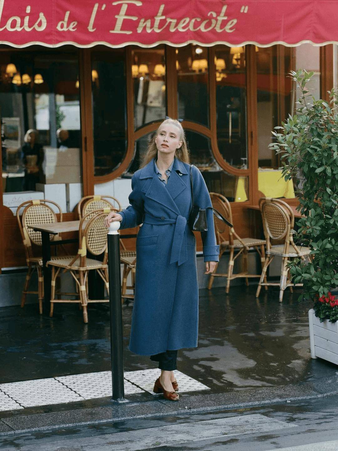 特点:灵感来自浴袍,领口大翻折、腰部有系带设计,衣身宽松垂坠,自带“刚睡醒”的慵懒感,适合追求“不费力时髦”的女性。