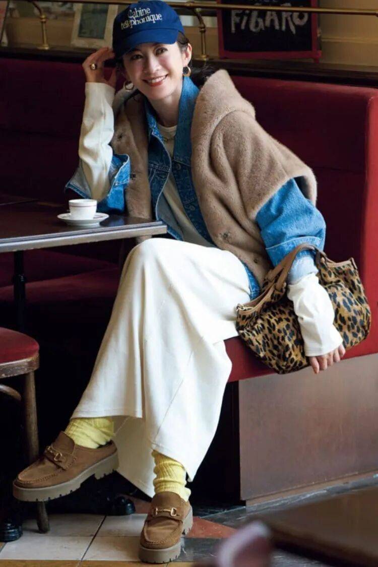 冬季穿搭多为厚重的大衣、羽绒服,容易显得单调臃肿。露袜作为“视觉分割点”,能拉长腿部线条(如九分裤配短袜,视觉上从脚到腿形成一条线,显高);同时,袜子的颜色、花纹(如亮黄色、酒红色、小图案)能成为“点睛之笔”,打破沉闷,增加穿搭的细节亮点。
