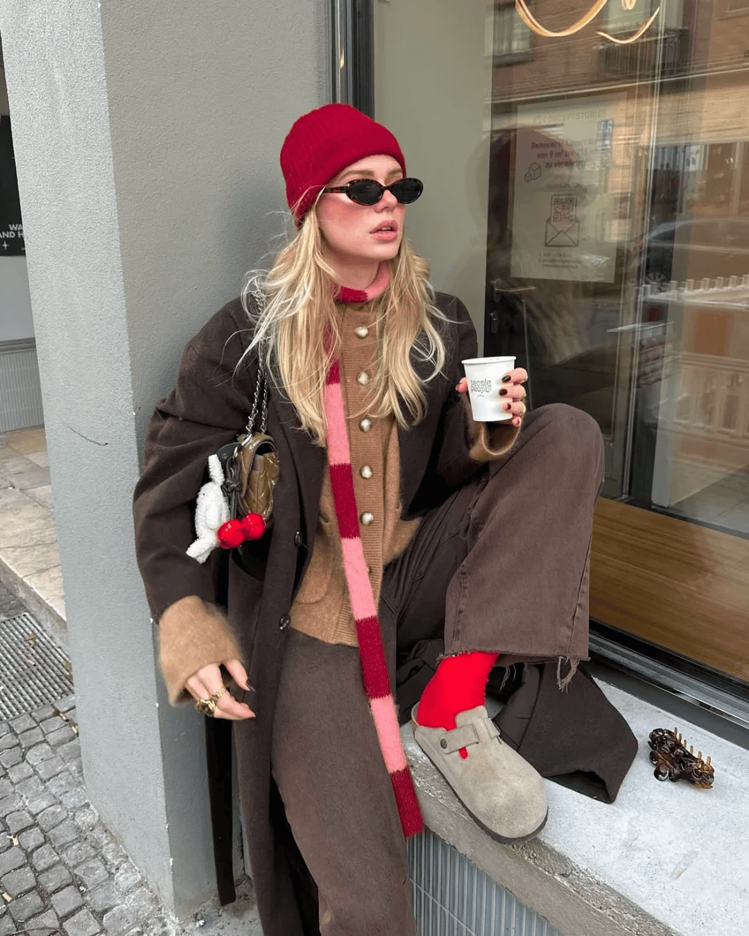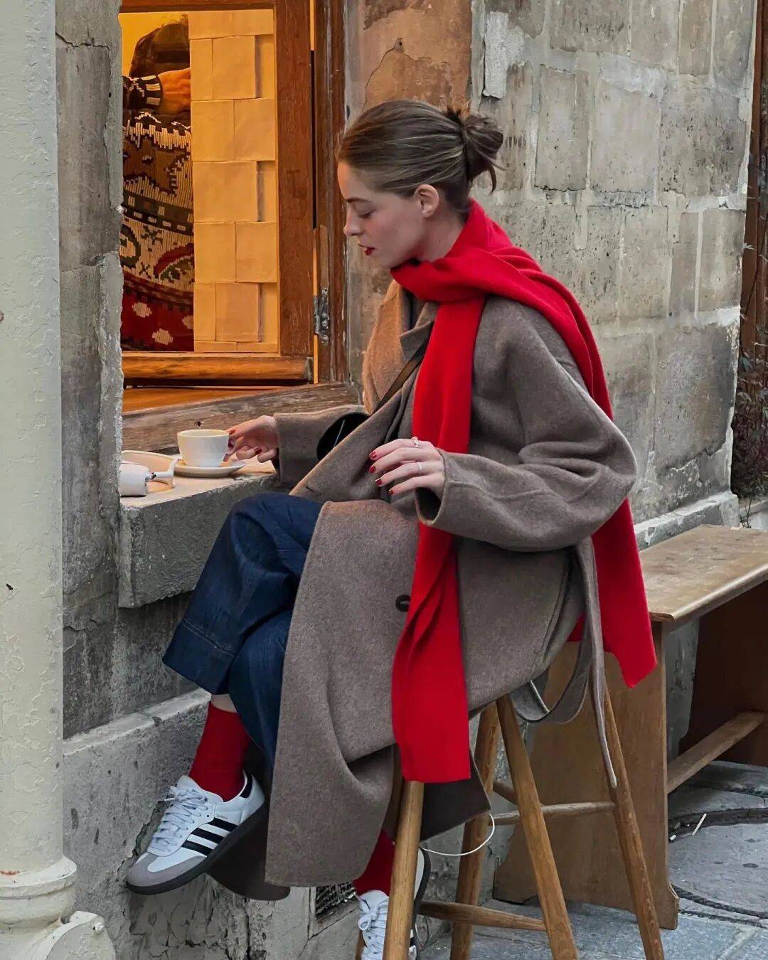 亮色系(酒红、亮黄、枚红):搭配深色外套(如黑色羽绒服、藏青色大衣),打破沉闷,增加元气(如黑色羽绒服配枚红色短袜,搭小白鞋,瞬间从“臃肿”变“活泼”);