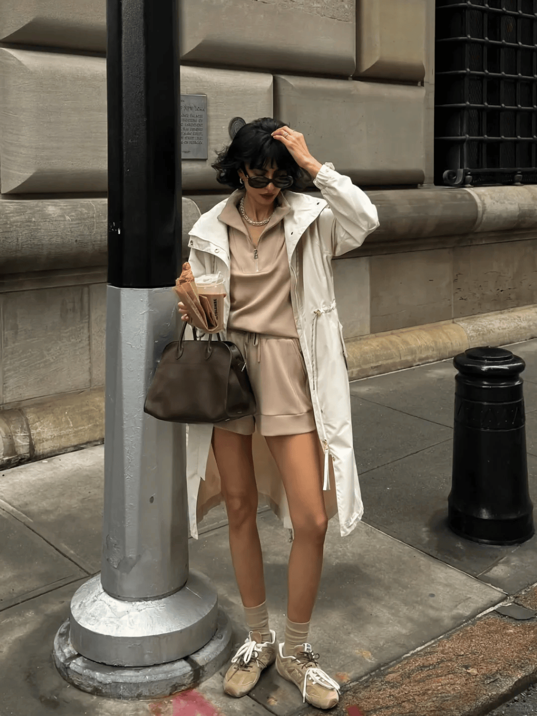 鲨鱼裤/紧身裤:配中筒袜(长度到小腿肚),柔化紧身裤带来的“腿型暴露感”(如腿粗、腿不直),搭厚底鞋,还能偷偷增高;
