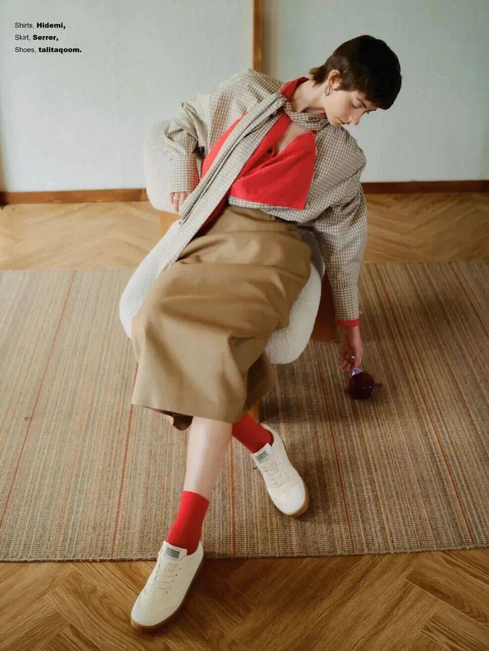 九分烟管裤/高腰长裙:选短袜(长度到脚踝上方),颜色与鞋子顺色(如白袜子配白鞋、米袜子配浅棕鞋),视觉上“脚-腿”连成一线,巨显高;
