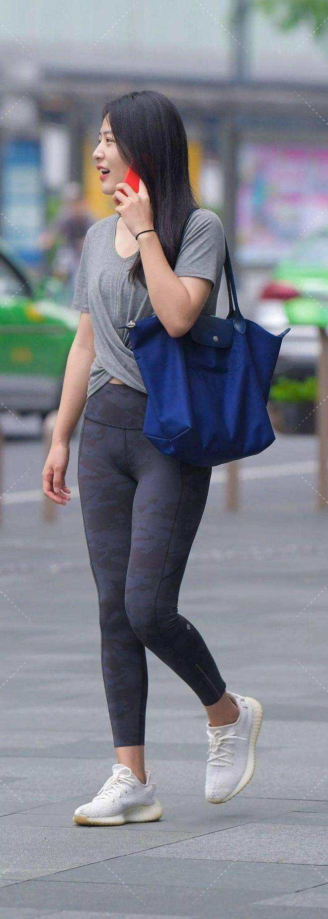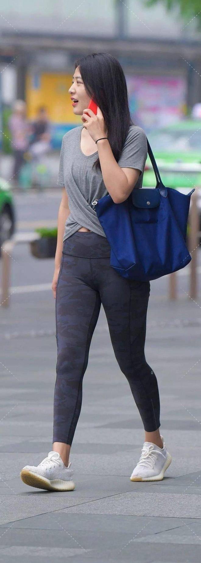 腿粗/臀大:深色瑜伽裤+宽松上衣遮臀,亮色鞋包转移视线。