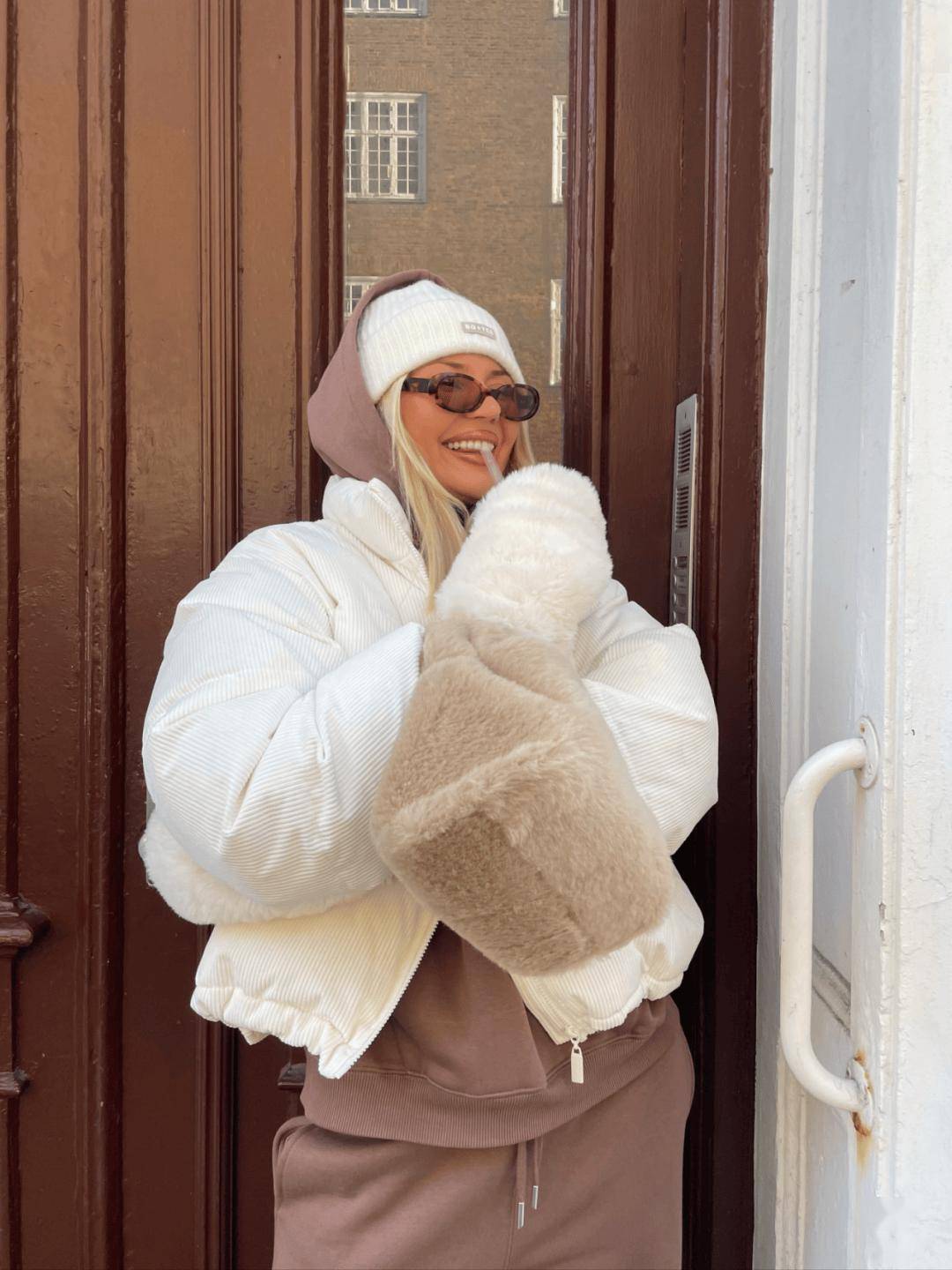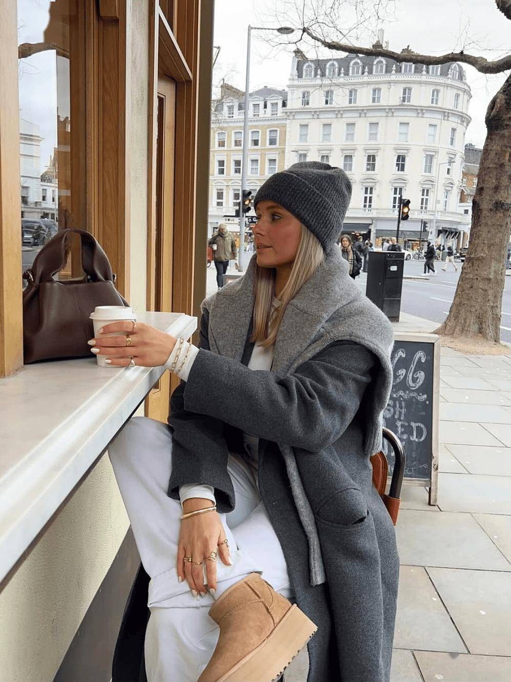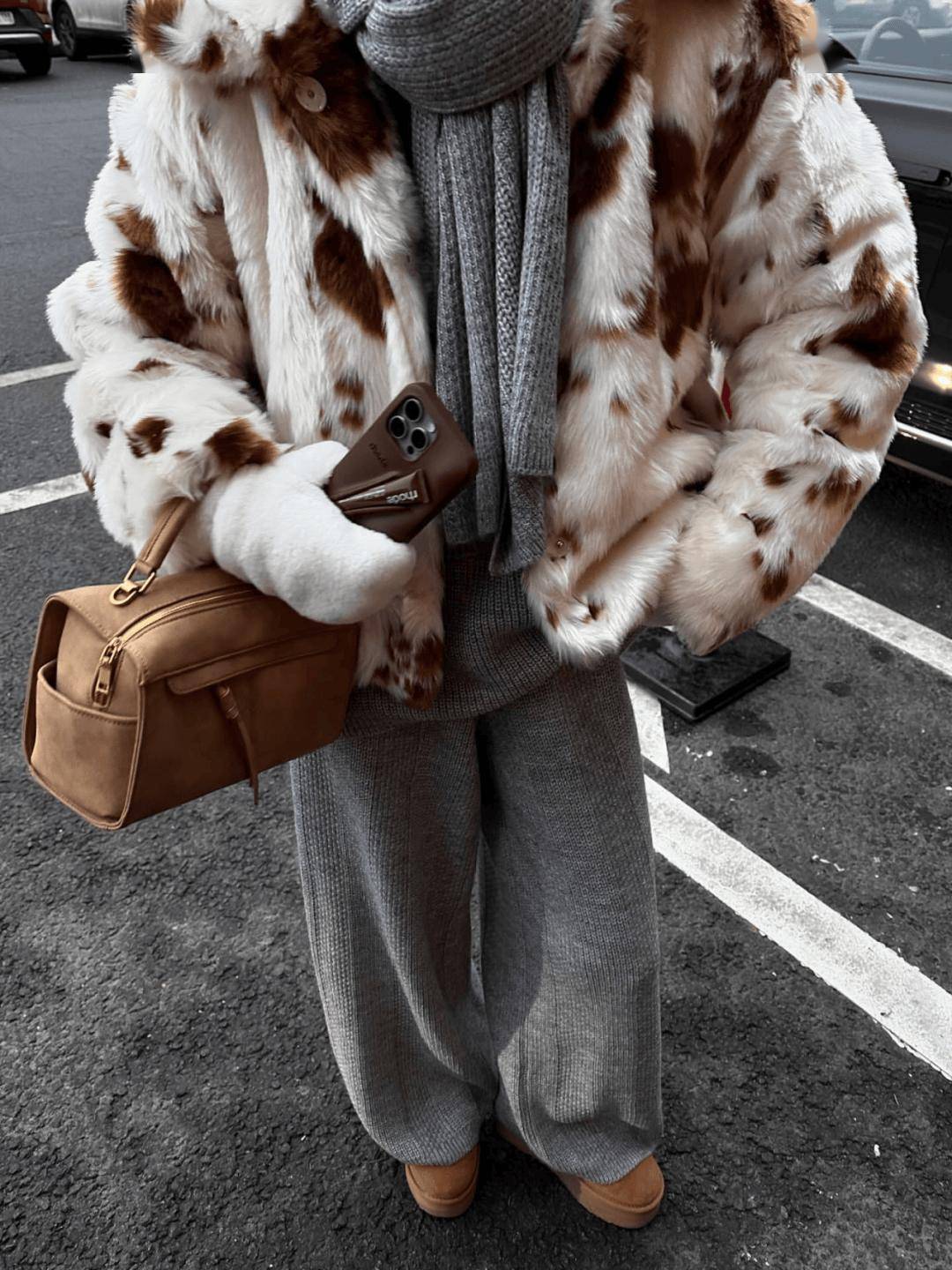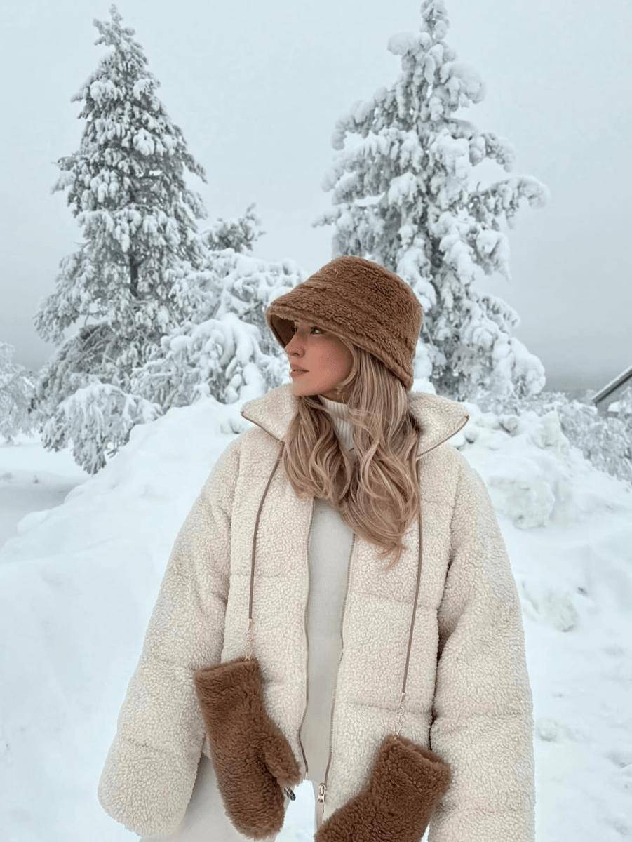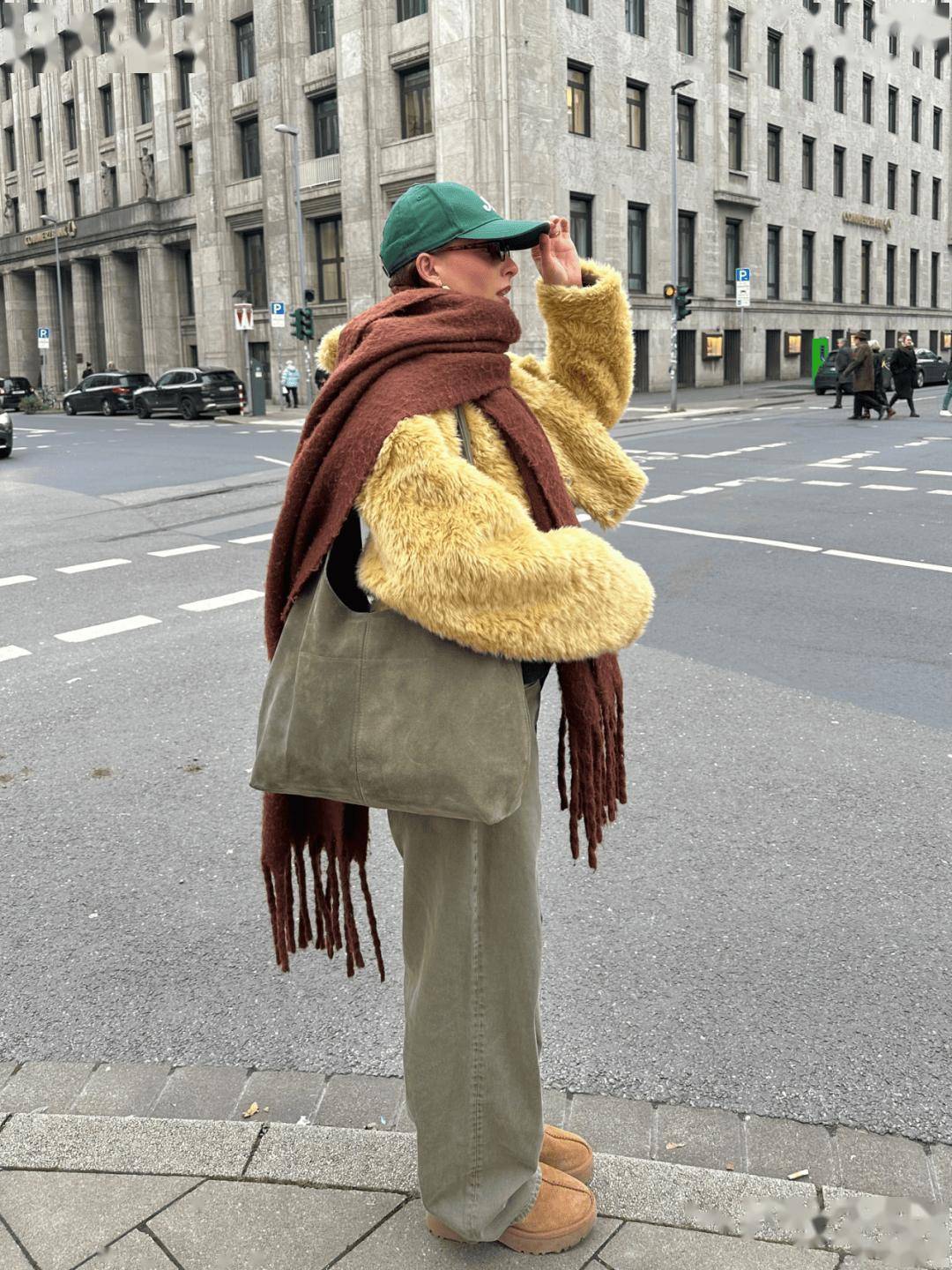 鞋袜呼应:加绒靴+同色系袜子,保暖又拉长线条。