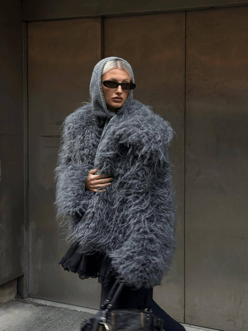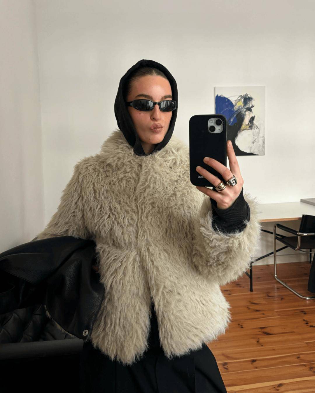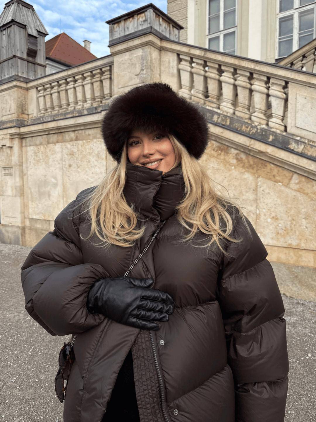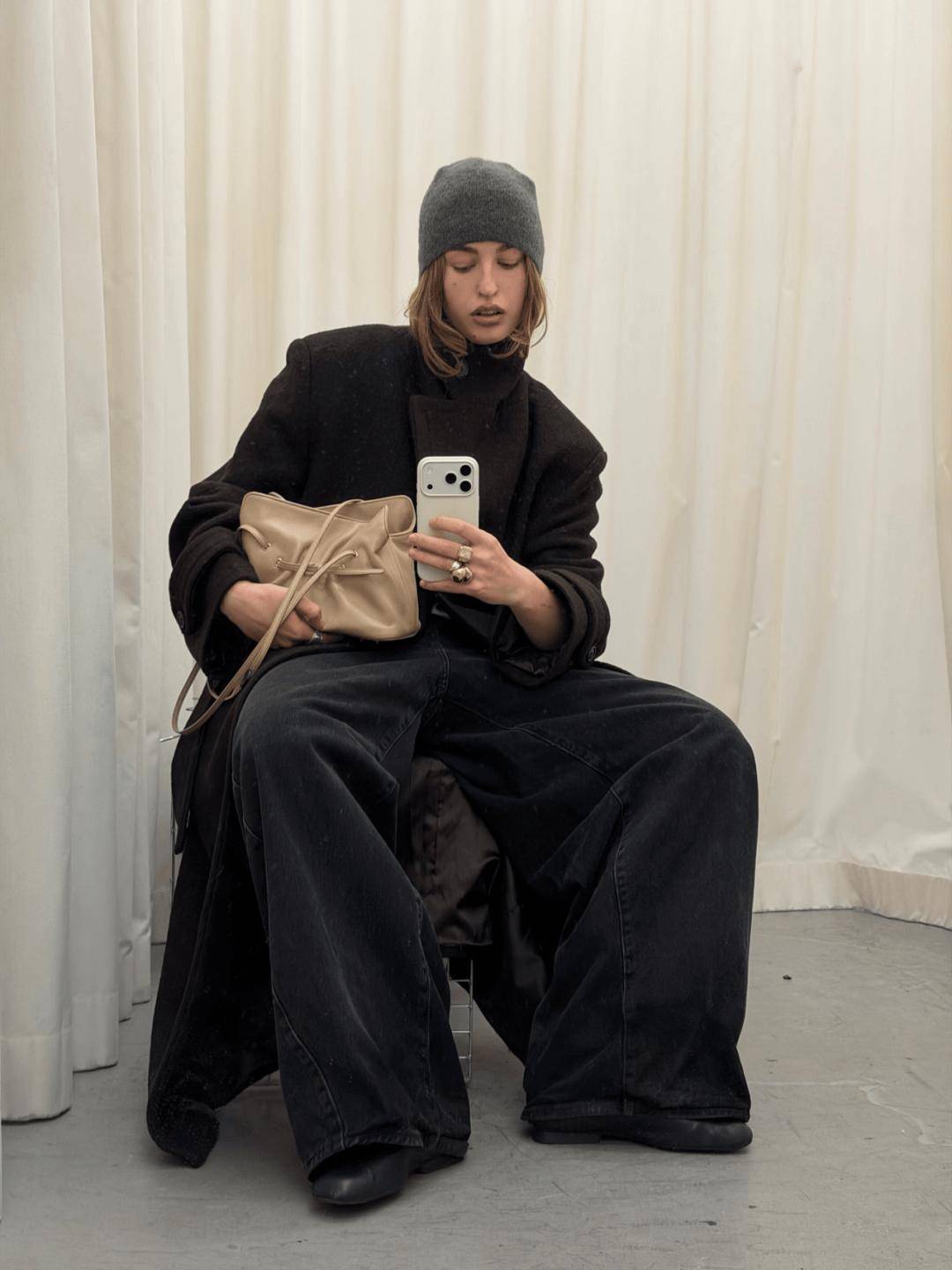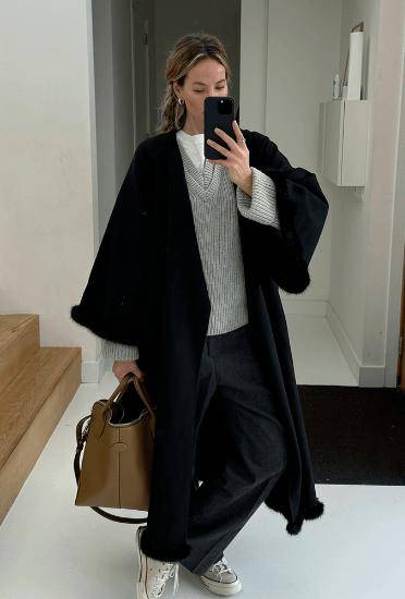 材质混搭:羽绒服+毛呢大衣的层次感,比单一厚重单品更显利落。