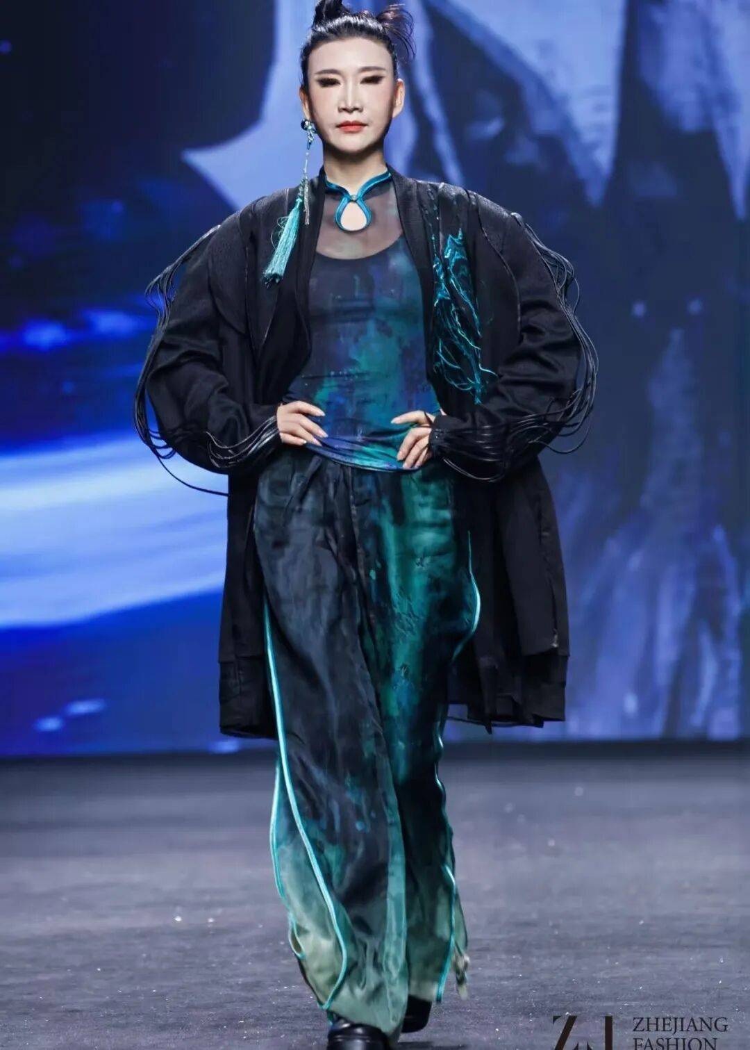 东方美学当代化:杭州艺尚小镇“无界艺术时尚周”以“潮起东方·数字织梦”为主题,集结学者与品牌(如万事利、安正集团),探讨水墨、书法等传统艺术如何通过数字技术与现代剪裁焕新。濮院时装周闭幕秀《东风染翠》将非遗绣艺与高定婚纱结合,重构江南水墨意境。
