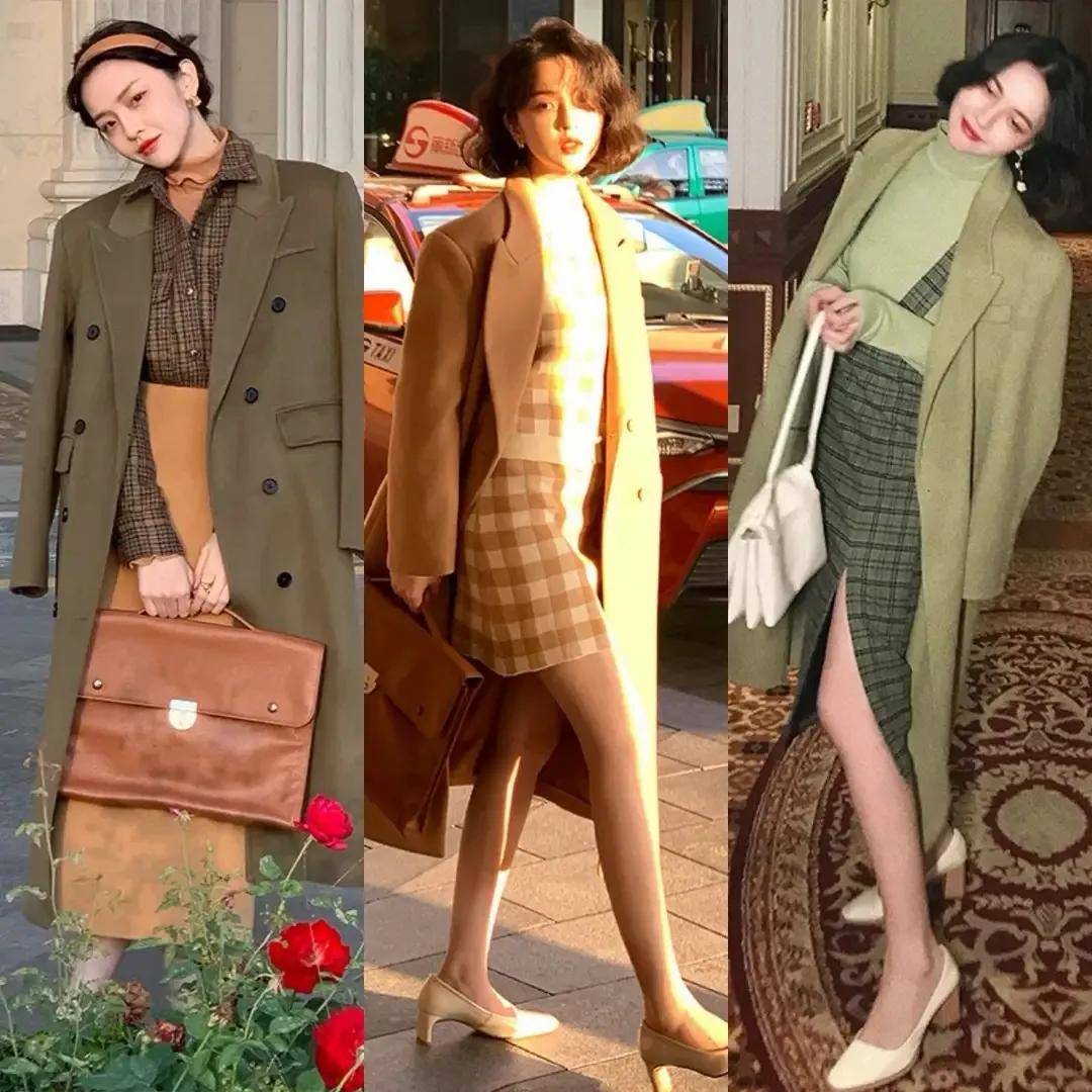 我们选择的裙子裙长盖过膝盖会更得体,但是大衣的长度不能超过裙子的长度,要适当的露出一点裙摆,这样会更好看,更有层次感。同时,我们可以用不同颜色的裙子和不同颜色的大衣组合在一块,形成一个撞色的效果,这样会层次感更分明。