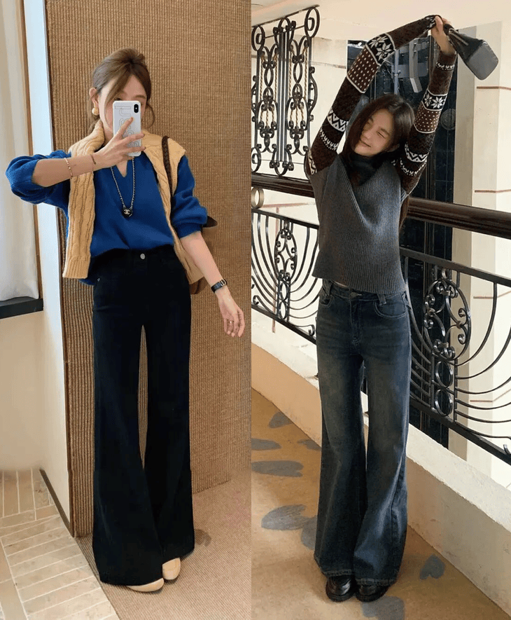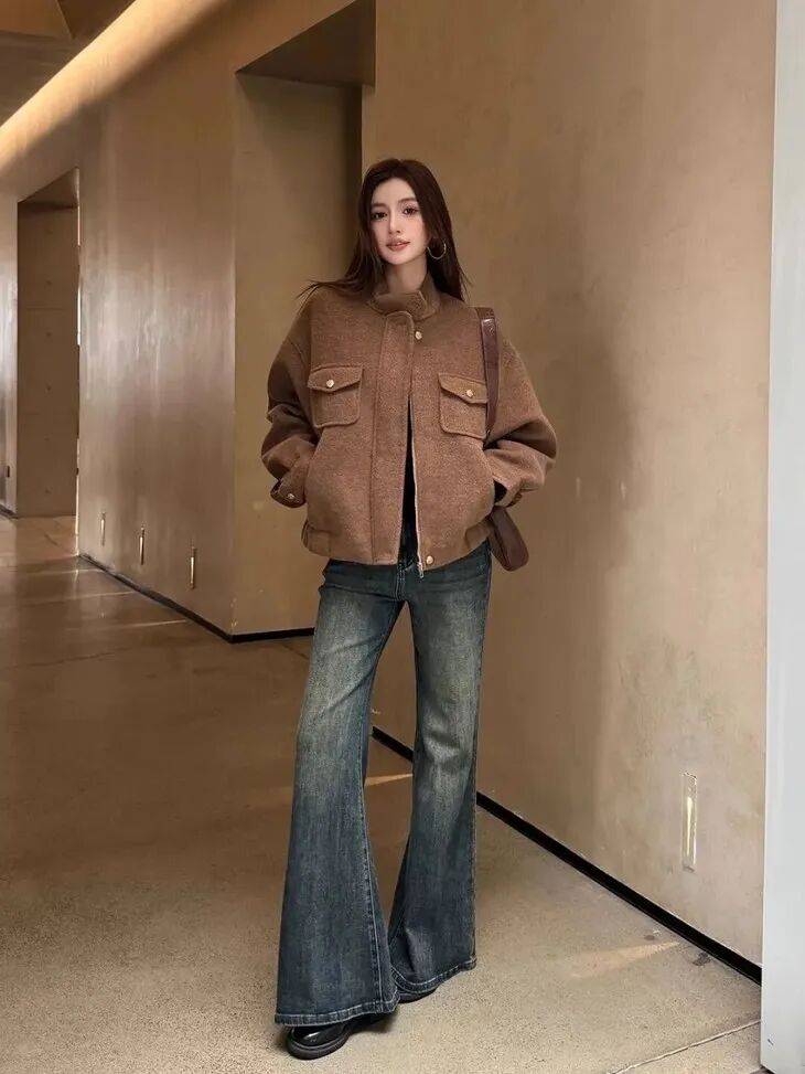 牛仔裤的版型众多,但最推荐的还是修身的微喇牛仔裤,首先,微喇设计自带复古韵味,搭配柔软毛衣或利落大衣,保暖之余更添减龄活力,轻松穿出“不费力的优雅”,最重要的是修身的版型加微喇叭的设计,可以让腿部线条更完美,整体穿搭在视觉上也更加显瘦显身材。