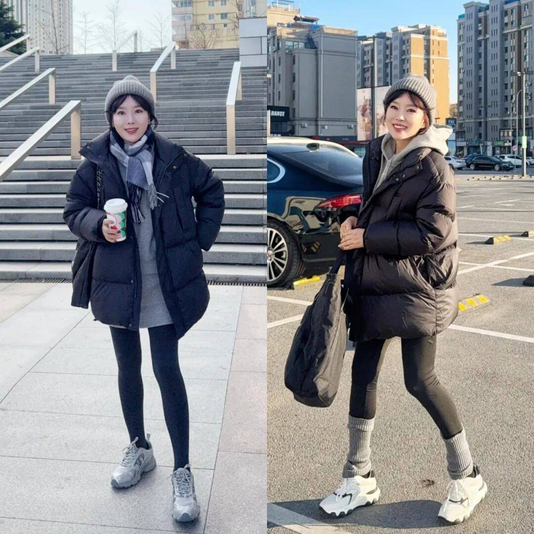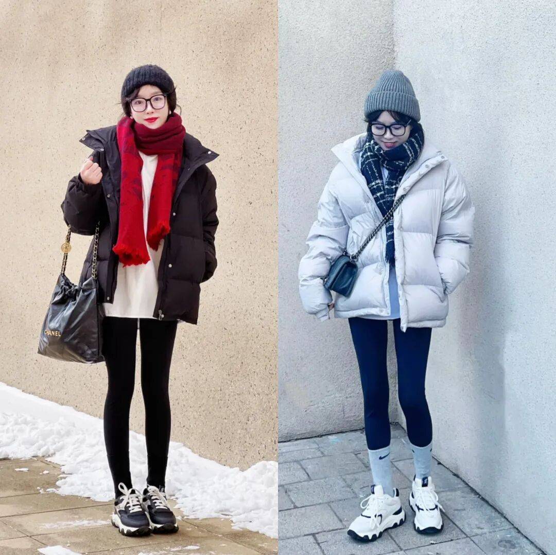 冬季穿搭羽绒服是保暖的不二之选,但羽绒服难免会显臃肿,所以选择搭配瑜伽裤,可以打造上宽下窄的效果,再踩一双运动鞋,适当用围巾点缀,无龄感穿搭,50岁的女性也能诠释30岁的气质,冬季氛围感十足。