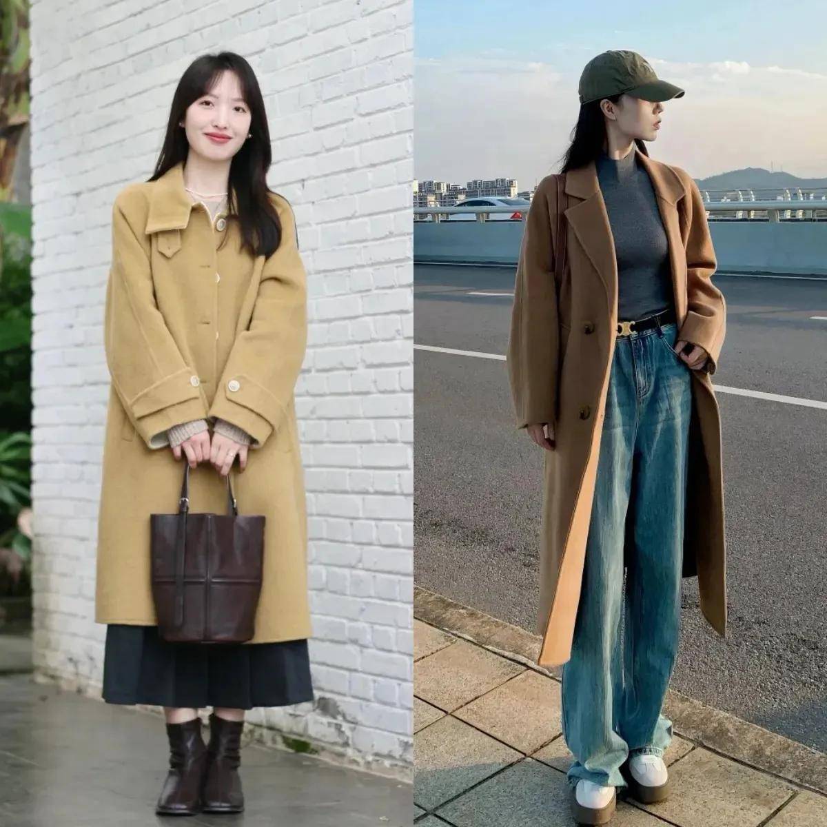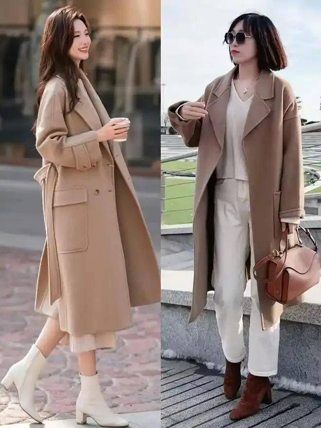 就拿大衣来说,对于身材高挑的女性来说,搭配高腰阔腿裤,那种气场全开的效果,真的可以改变整个人的气质,比如博主Lin的这套驼色大衣内搭同色系毛衣打底,下半身选择白色高腰阔腿裤,满满的高级优雅,而对于微胖身材或者小个子的女性来说,则更推荐小脚裤哦!