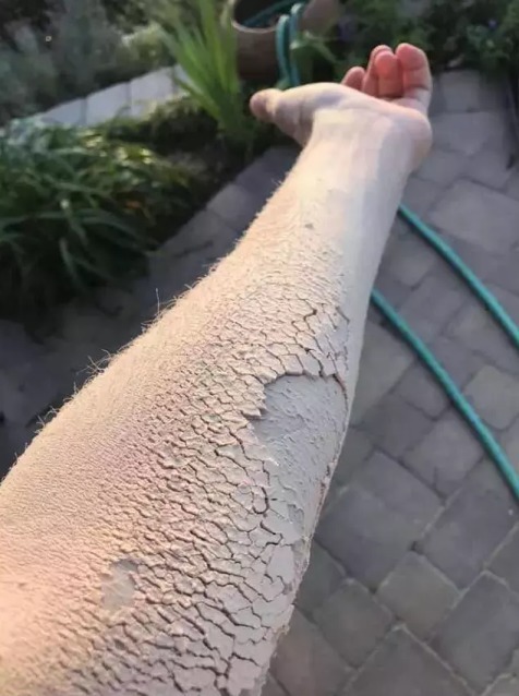 这其实并不是手臂干裂,而是粉尘落到了手上,然后变成了这个样子。