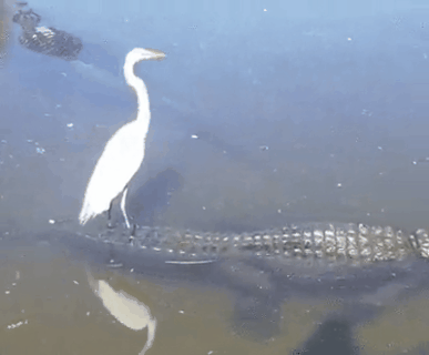 这只白鹤乘着豪华的游轮,在海上惬意地行走着。