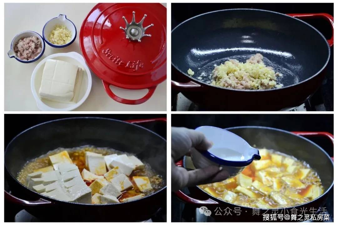 材料:嫩豆腐、肉末、姜蓉和蒜末