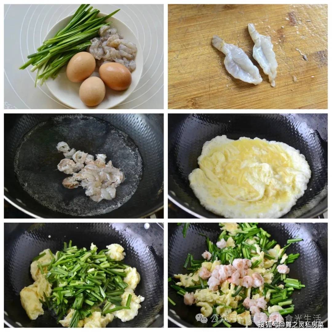材料:鸡蛋3个,虾仁适量,韭菜少许。