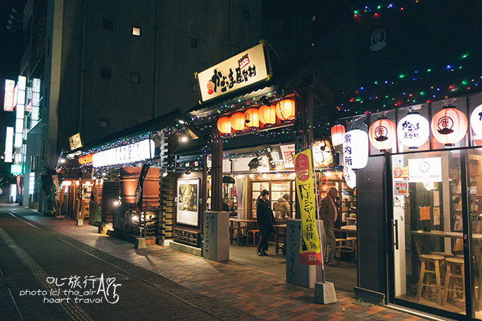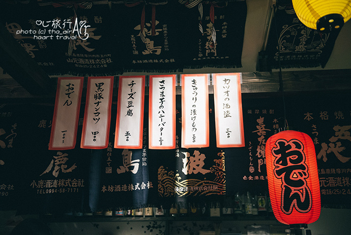在日语中“屋台”是露天饮食店的意思,也就是大排档。鹿儿岛屋台村距离鹿儿岛中央车站很近,只需要步行5分钟,屋台村里面大概有二十多家摊档,一家挨一家,每家都很小,屋里屋外加起来通常只有8到10个座位。夜晚的屋台村很热闹,有的摊档已经坐得满满的。隔着窗子看日本男人下了班,同事几人来此喝酒,这样的画面很有电影感。