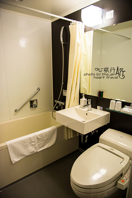 房间看起来干净舒适,日本的酒店卫生间都不大,这点要有点准备,但酒店配的洗发水都是资生堂的,这大概就是地域优势吧。