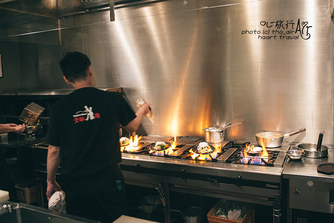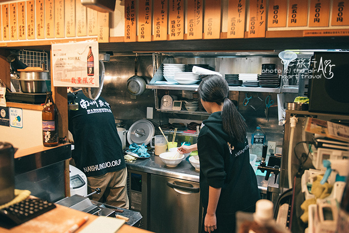 屋里很小,大家围着吧台而坐。摊档由一男一女一起打理,既是老板,也是厨师。