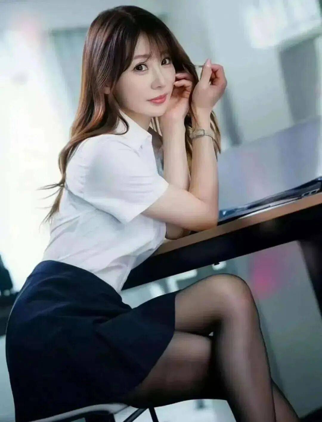 西装裤是直筒款,从 86cm 的臀线向下慢慢放宽,衬得臀型愈发饱满,走动时裤脚扫过脚踝,带着职场熟女的利落,可眼尾那点 “不疾不徐的媚”,又悄悄把 “严肃职场” 变成了她的 “腰臀秀场”。