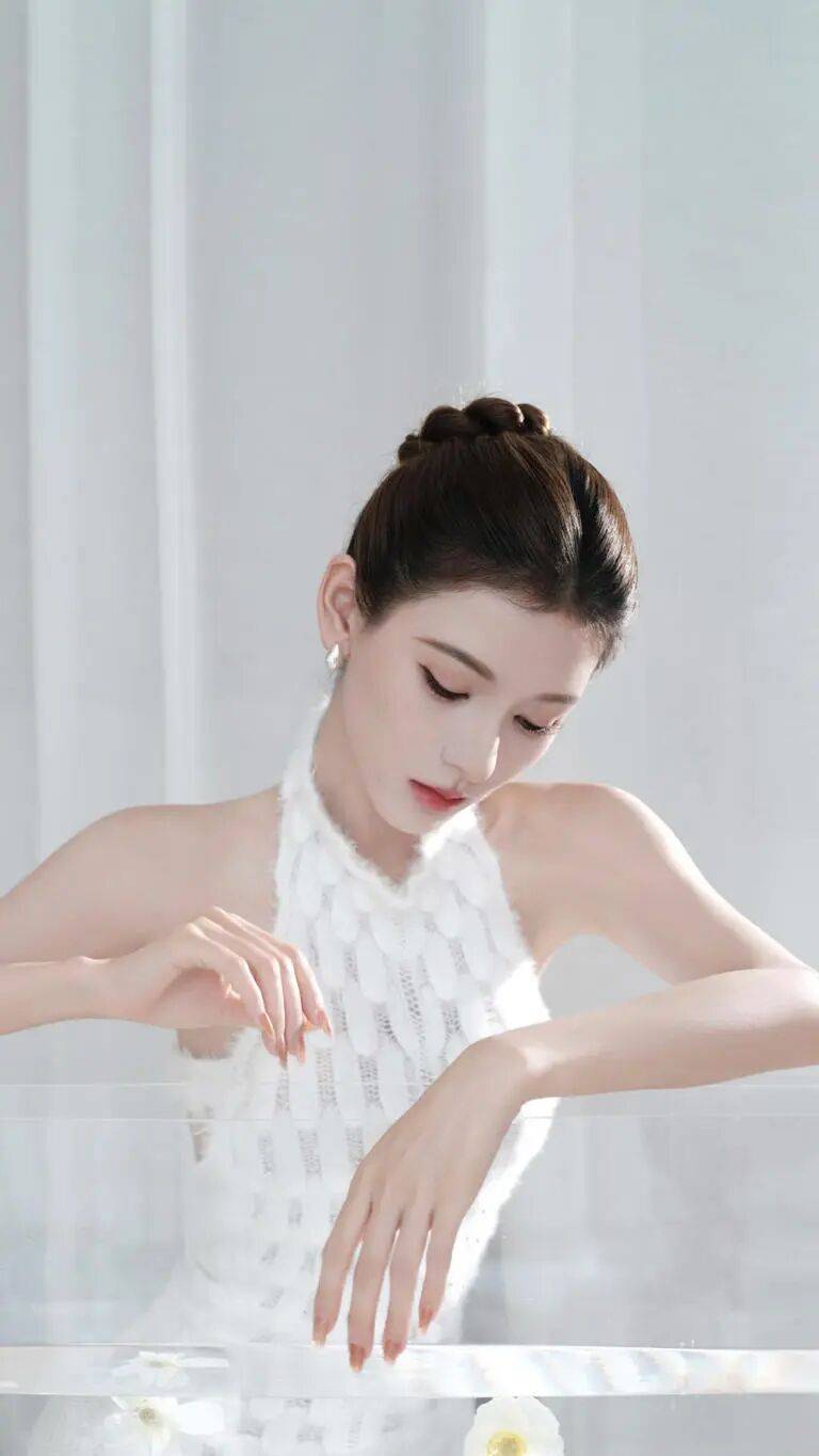 没有繁复的修饰,无需张扬的pose,张予曦以最简约的剪影诠释高级感——那是骨子里的从容与五官精雕般的和谐。她的美不施压迫,却让人忍不住屏息,像偶然瞥见一株晨露中的白茶花,纯净得让人心生敬意。
