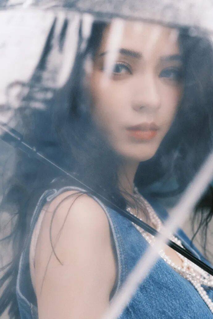 先看那组身着丹宁套装的照片,张予曦就像从时尚秘境中走出的精灵。她手持透明伞,漫步在都市的雨中,那眼神,迷离又清冷,仿佛藏着无数不为人知的故事。雨滴顺着伞沿滑落,像是时间的琴弦,在她身边弹奏出空灵的旋律。此刻的她,宛如一部电影里独自在雨中沉思的女主角,每一个动作、每一个眼神,都带着一种与生俱来的艺术感。丹宁的材质,硬朗中带着一丝不羁,而透明伞的轻盈,又为这份硬朗增添了几分柔情,二者相互交织,碰撞出令人惊艳的时尚火花。