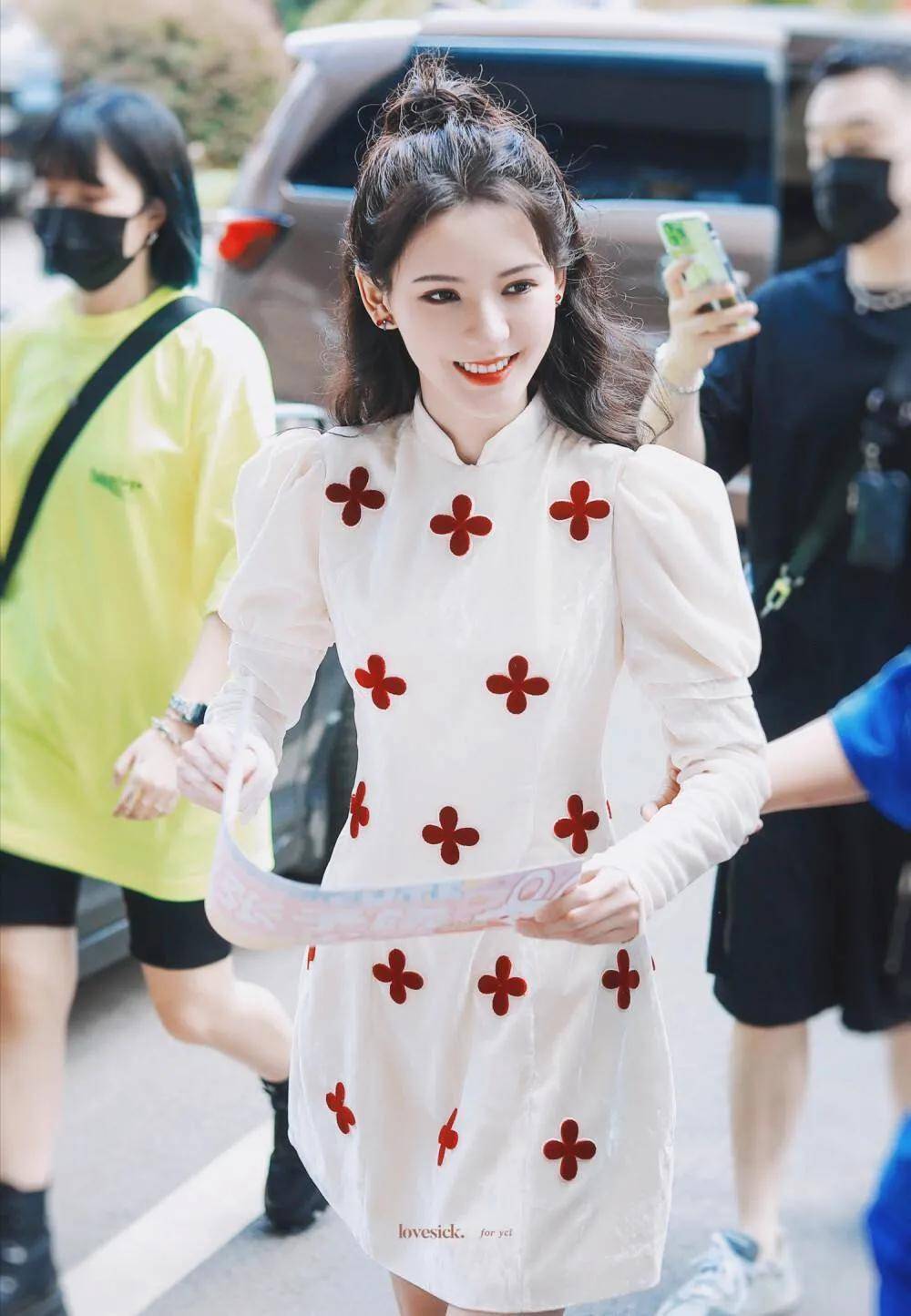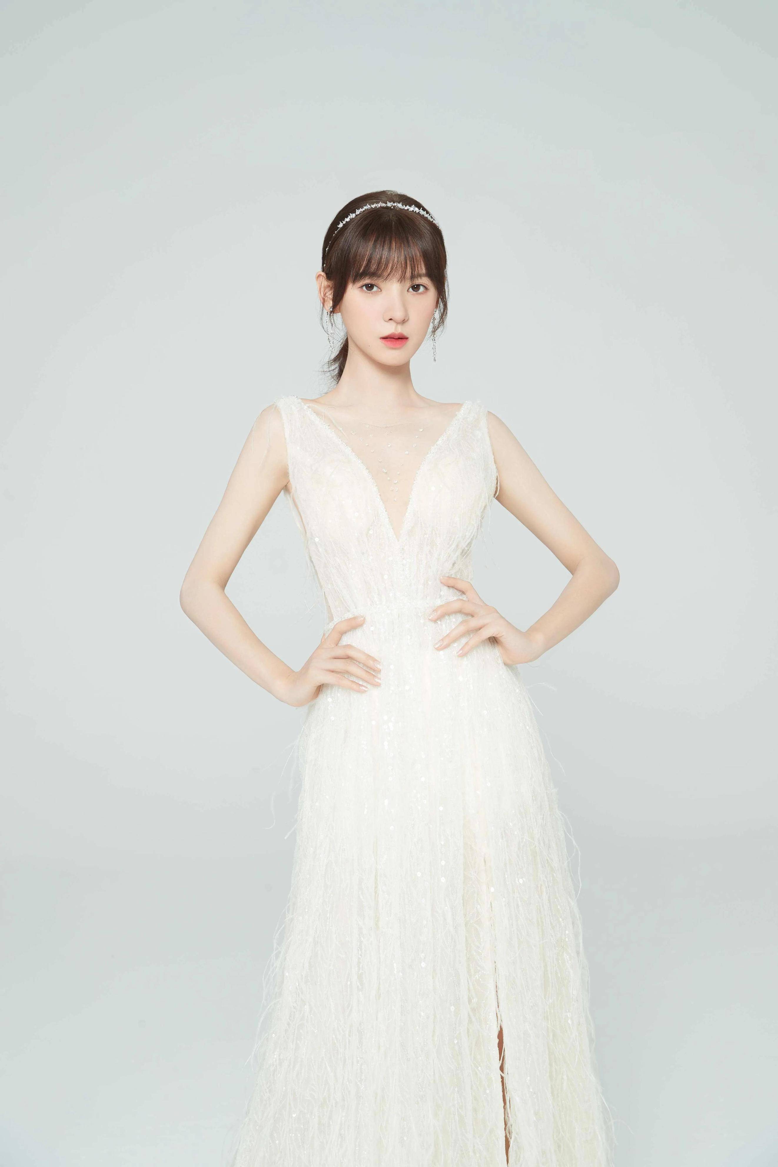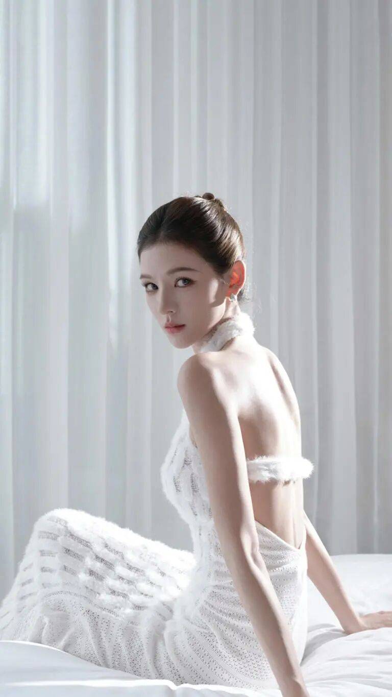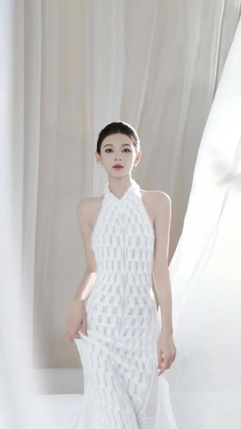 白色,向来是纯净与优雅的象征,而张予曦穿上它,更添了几分清冷气质。挂脖的设计巧妙地露出她精致的锁骨与优美的肩线,既性感又不失端庄。长裙贴合身形,勾勒出她曼妙的身姿,行走间,裙摆微微摆动,宛如一只自带滤镜的白蝴蝶在翩翩起舞,灵动而迷人。