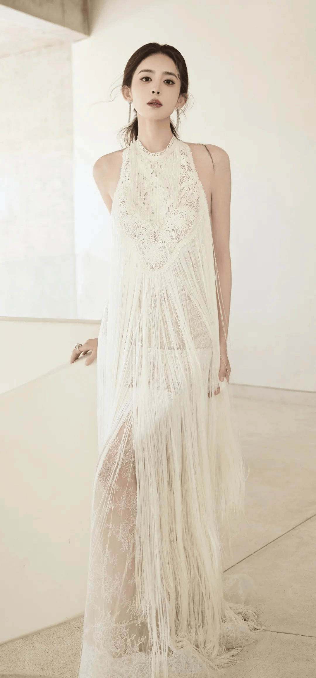 在时尚与美貌交织的星河中,古力娜扎宛如一颗璀璨的流星,划出绝美轨迹。当她身着大露背白色流苏裙现身,那画面瞬间定格成永恒经典。洁白如雪的裙身衬着她吹弹可破的肌肤,流苏随着步伐轻盈摇曳,而那片美背,线条流畅似天鹅颈的延伸,白皙细腻得能泛出光来,吸睛程度直接拉满。
