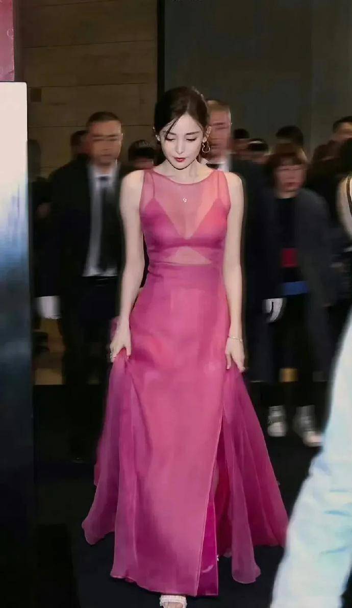 先看她这身粉色透视长裙,设计感满满。透明的纱质面料若隐若现,既展现了她的好身材,又不会显得低俗,反而有种优雅的性感。搭配简约的耳环和项链,发型是利落的低马尾,整个人看起来精致又大方。在活动现场,她拿着香槟杯,笑容甜美,这身造型让她在人群中格外亮眼,把女性的柔美和时尚感结合得恰到好处。
