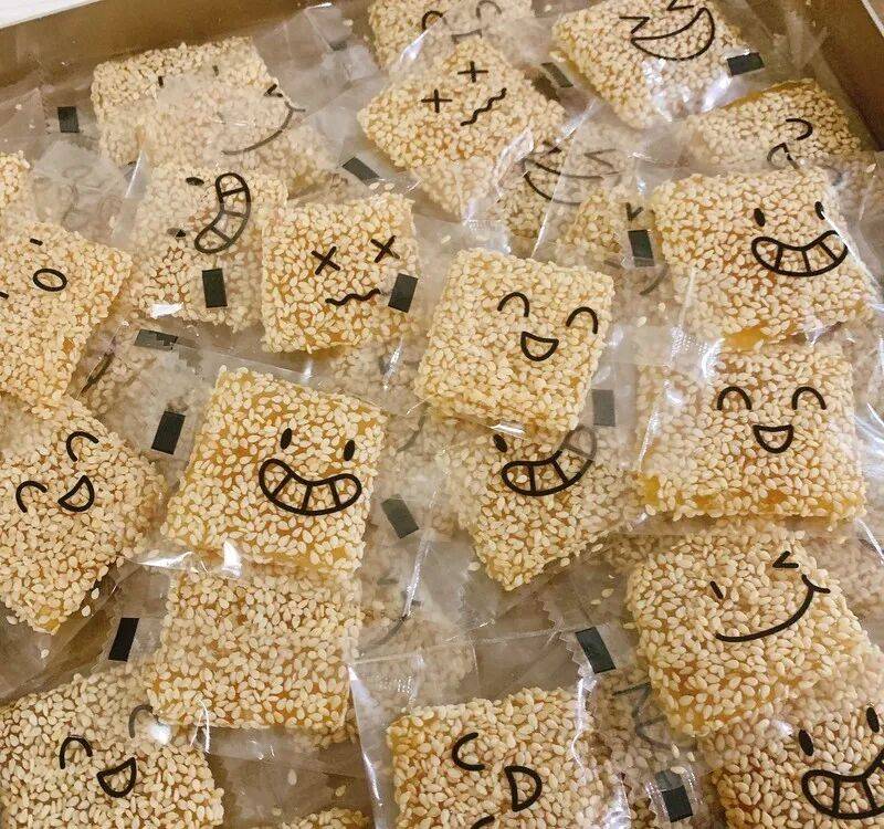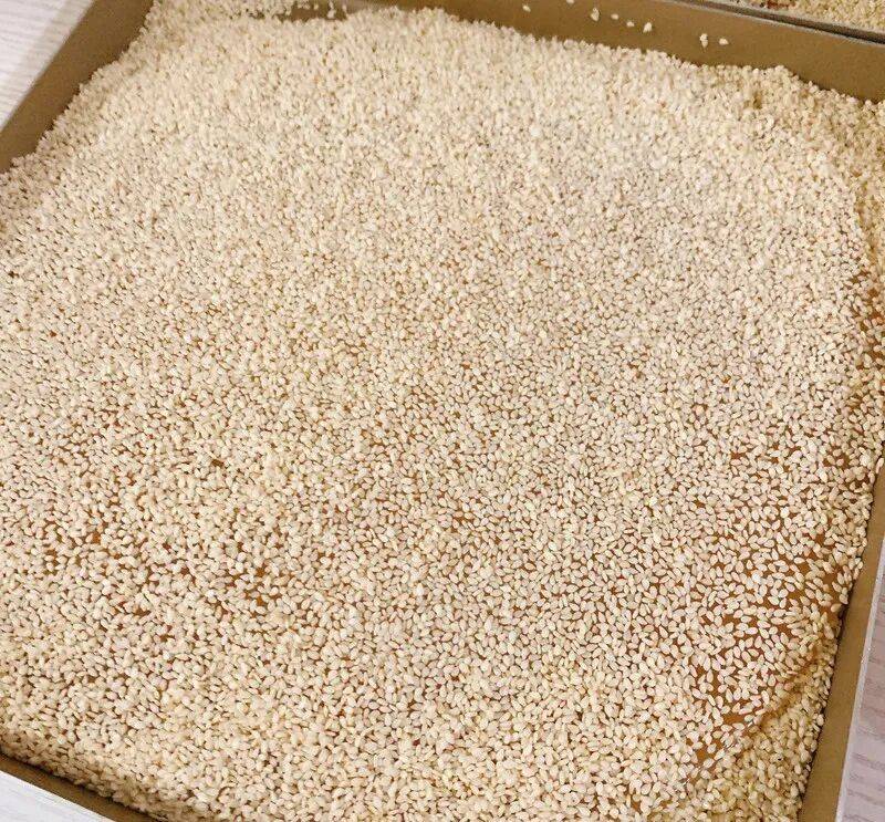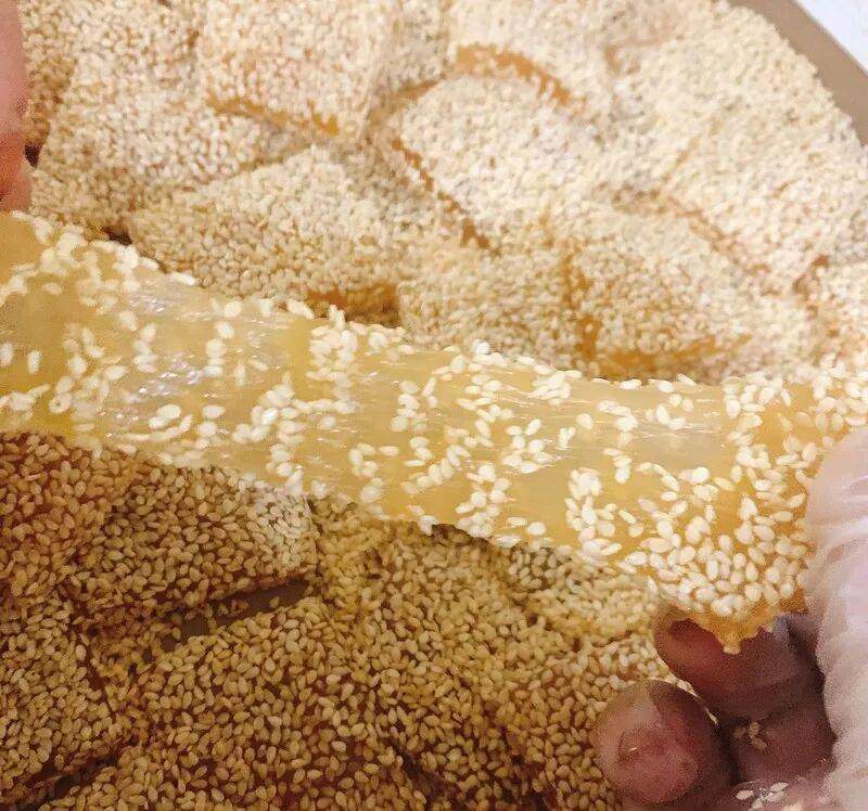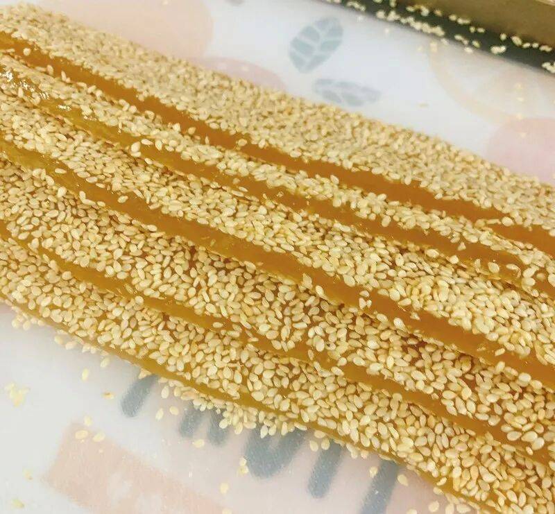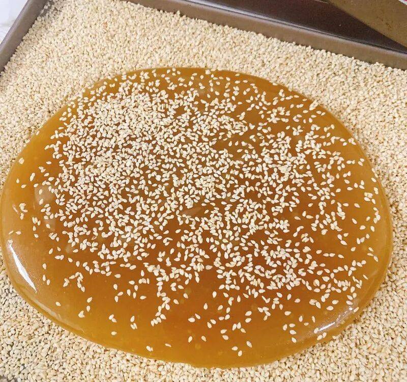 10、撒上白芝麻之后,用手按压一下,放凉再切