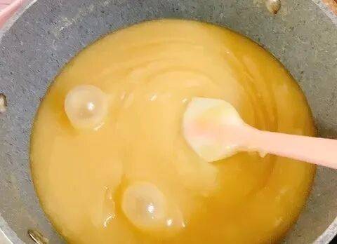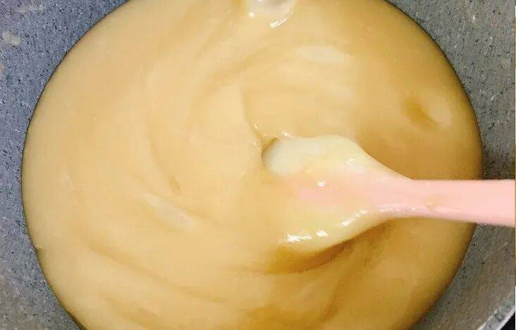 4、熬到这样的浓稠状态,就可以加调好木薯粉浆了