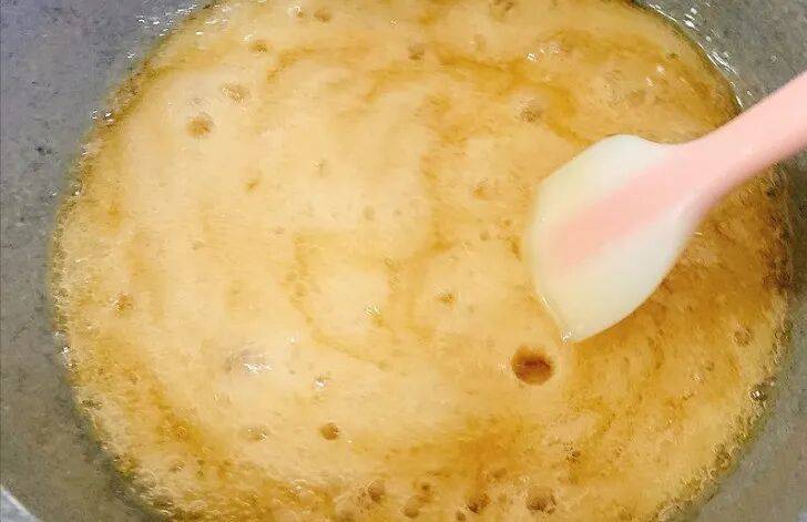 3、一直开火熬着不用管,熬到慢慢变浓稠,冒大气泡就要开始搅拌了,不搅拌就容易溢出来