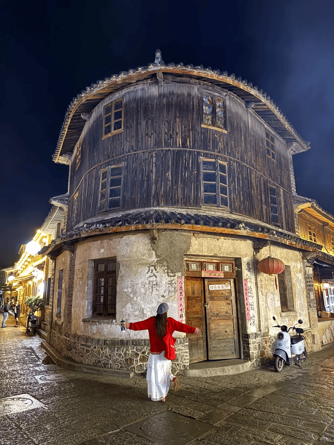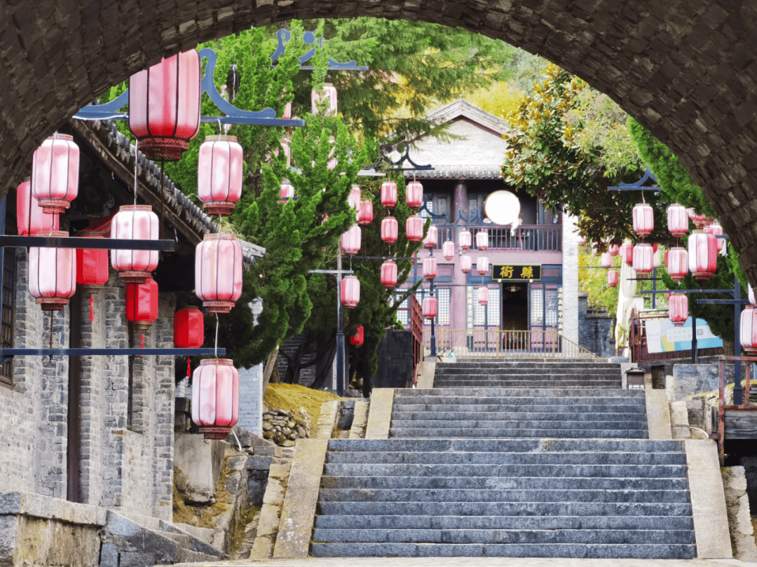 风中摇曳的灯笼,被雾汽浸润的花草,老式而温馨的店铺,让人感觉像是穿越到了电影中的武侠江湖。