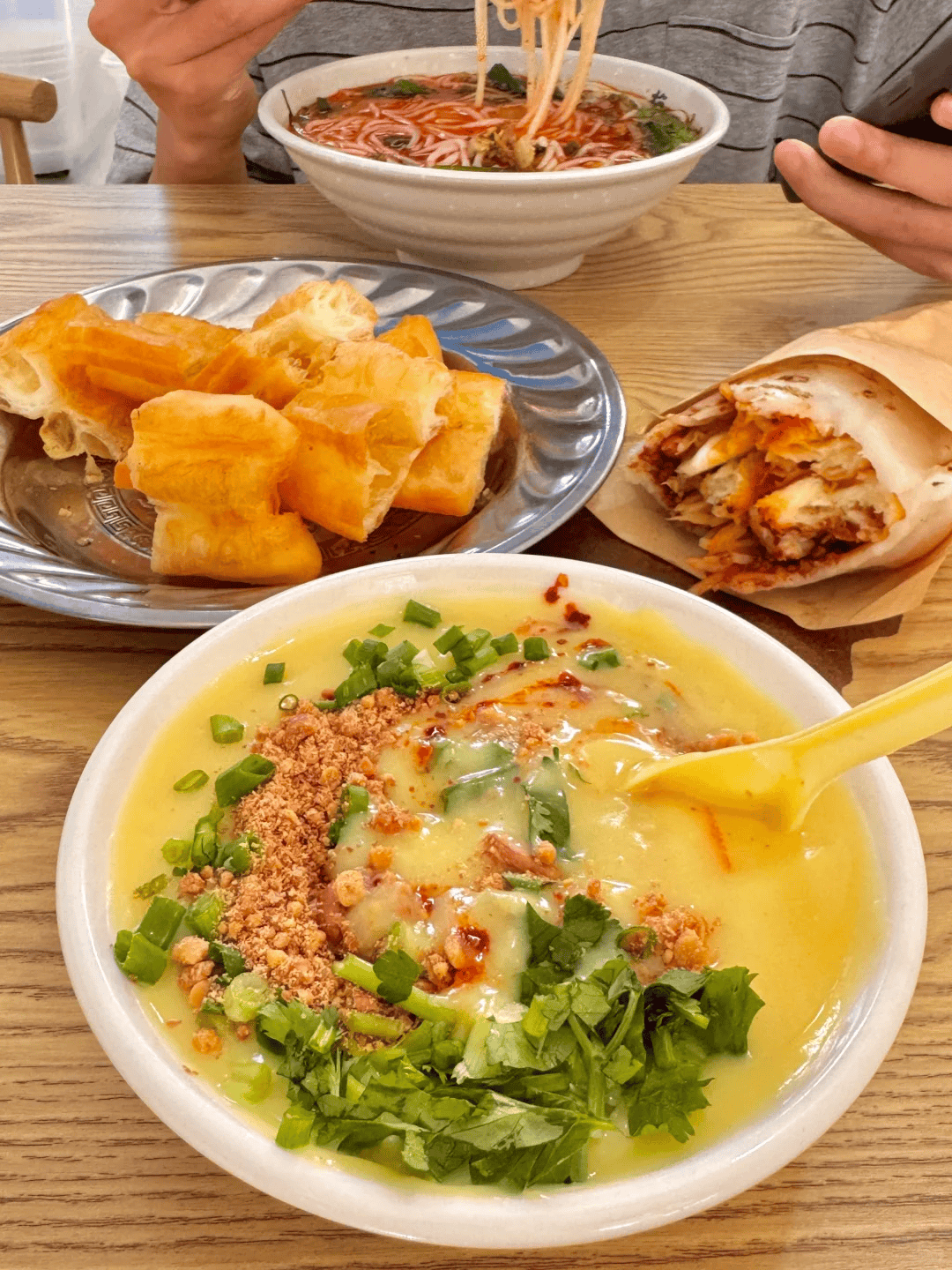 一口咬下,软糯的饵块夹杂着脆香的油条、浓郁的酱汁以及清爽利口的蔬菜在口中一起爆开,美味如期而至,让人爱不释口。